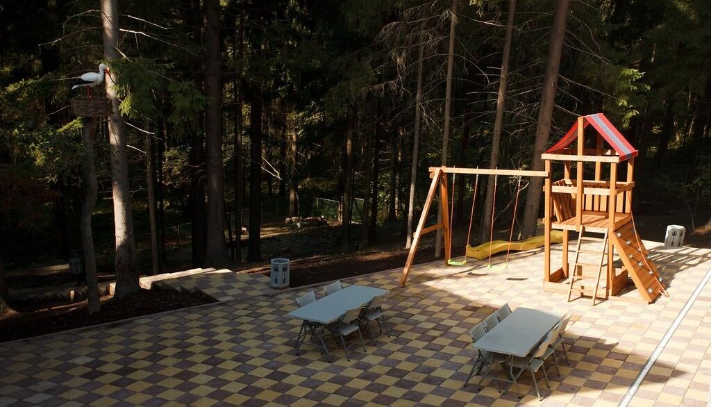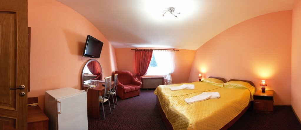 Удобства: — Крытый бассейн, сауна, баня, ресторан, кафе, бар — Бесплатная парковка, Wi-Fi, трансфер (аэропорт/вокзал) — Номера с санузлом, мини-баром, телевизором, кухонной зоной — Развлечения: рыбалка, катание на лыжах и лошадях, детская площадка — Размещение с животными (платно), питание (полный/полупансион, завтрак)