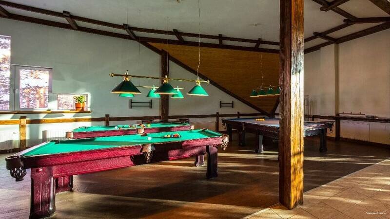 Гостям предлагают номера от 4000 ₽/ночь с холодильником, телевизором и тапочками (питание не включено). На территории есть ресторан, бар, кафе, сауна, конференц-зал и терраса. Для активного отдыха доступны рыбалка, катание на лыжах и лошадях, футбол, а также площадка для пикника.