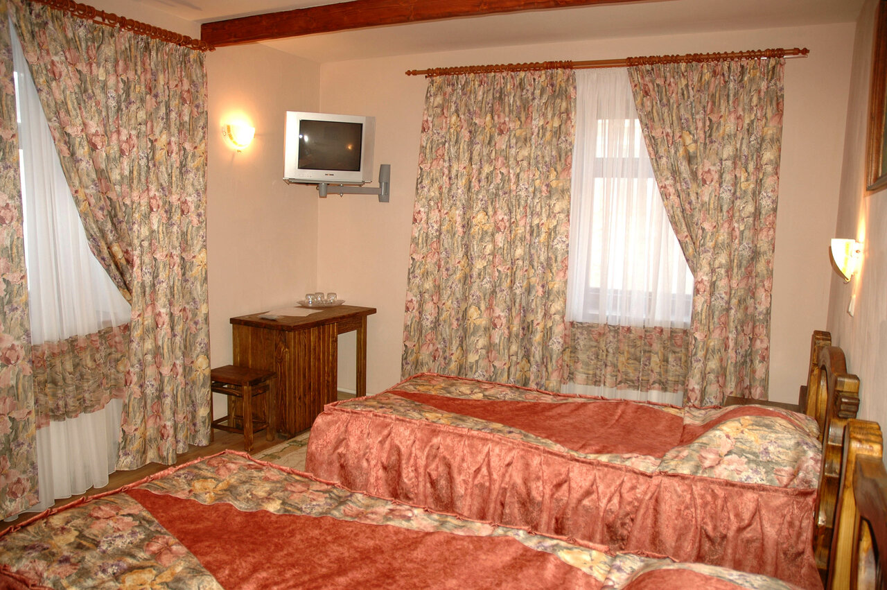 Хуже чем эта гостиница не встречала!!! Очень мрачно и темно внутри здания и в номерах, плохое освещение абсолютно везде и очень холодно , сломанные деревянные окна не закрываются, очень дует со всех щелей! Не говоря уже о том как грязно в номерах — скорее всего их не убирают, находясь в номере был очень противный запах плесени, пыль и даже покрывало, которое было на кроватях пахло пылью — это говорит о том что персонал не следит за чистотой и порядком в этих маленьких комнатках под названием номера !!! Цены в ресторане при гостинице очень дорогие и совсем не вкусно готовят!!! Не советую!