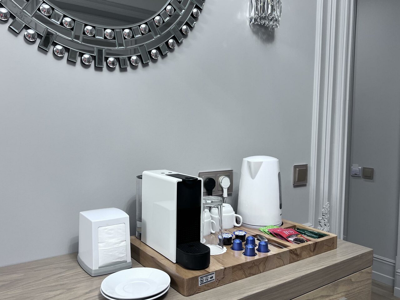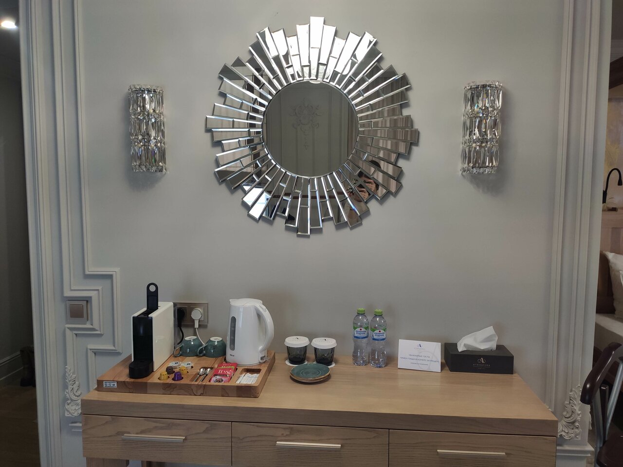 - Наличие халатов, тапочек, кофемашины в номере.