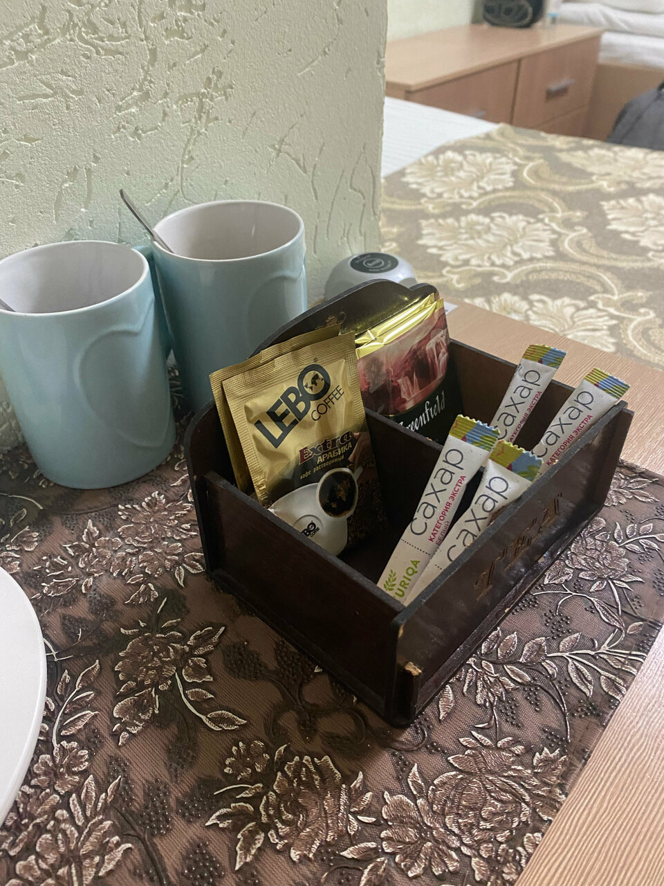 - Наличие чайника, чая, кофе, сахара.