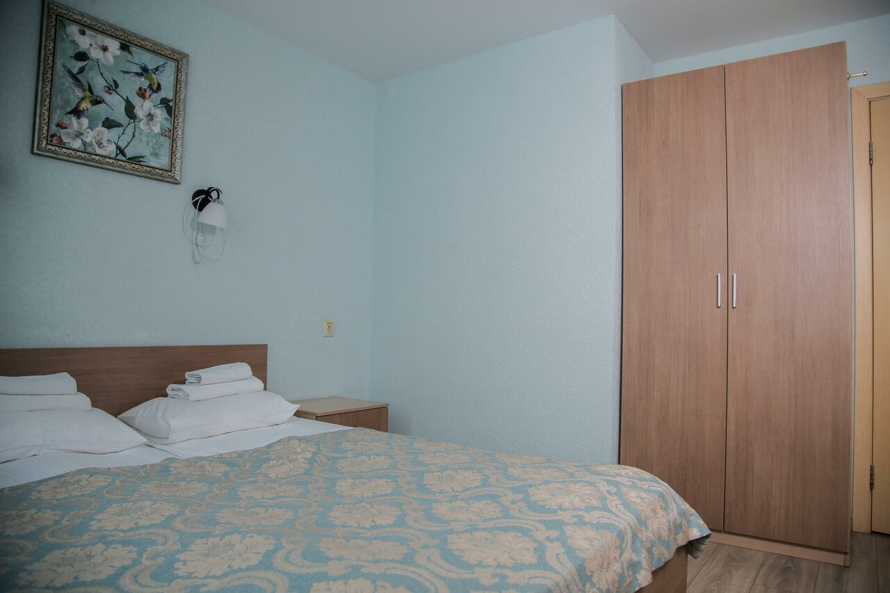 Чисто, аккуратно в номере холодильник и чайник. Воду лучше брать свою. За доп место (раскладушка) 800.