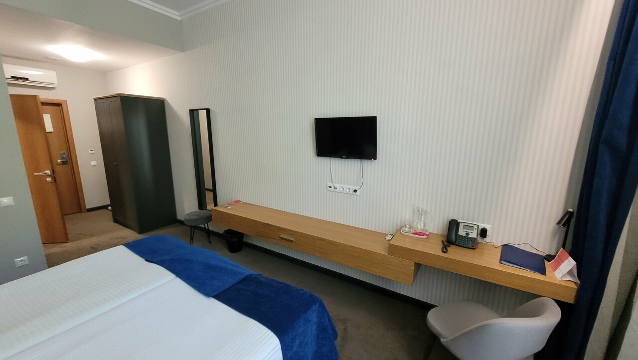 Стоимость номера может меняться в зависимости от выбранного тарифа (с завтраком/без завтрака) и дня недели (будни/выходные). В номере: телевизор, холодильник, фен, санузел и душевая с мыльными принадлежностями. Номер оборудован кондиционером.