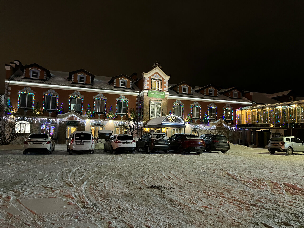 Отель с собственным колоритом: под старину и купеческий шик. Персонал доброжелательный. В номере все есть. Есть ресторан. Учитывайте, что в стоимость входит боулинг, бильярд, СПА и бассейн. Если будут планы посетить, то берите купальные принадлежности. До центра с достопримечательностями 7 минут на машине. Может кому-то понадобиться -рядом мойка самообслуживания для машин, а через дорогу обычная, но при нам была очередь.