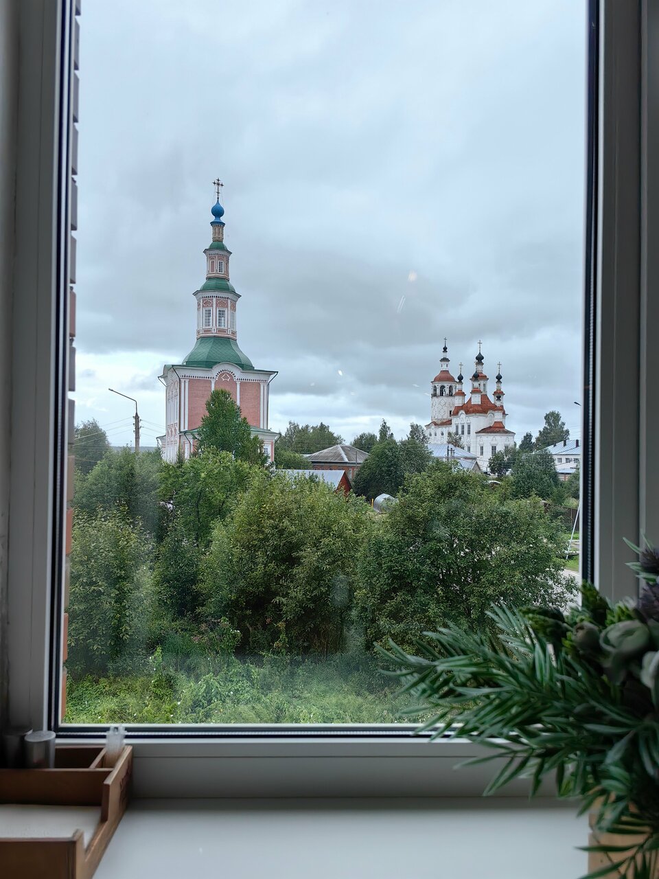 Очень уютное и атмосферное место, находится в близости от всех важных мест в городе + рядом очень красивый собор В номерах чисто, всё было убрано, постирано и ровно, все вещи для гигиены дали и даже больше (так и не воспользовался шапочкой для душа ) Есть кондиционер, общая кухня с холодильником, душ, утюг — не было ситуации, чтобы чего-то не хватило Персонал вежливый и приятный, есть завтраки, если нужно (сам не пробовал, но видел табличку с предложениями) Всем, кто будет останавливаться в Тотьме, советую это место