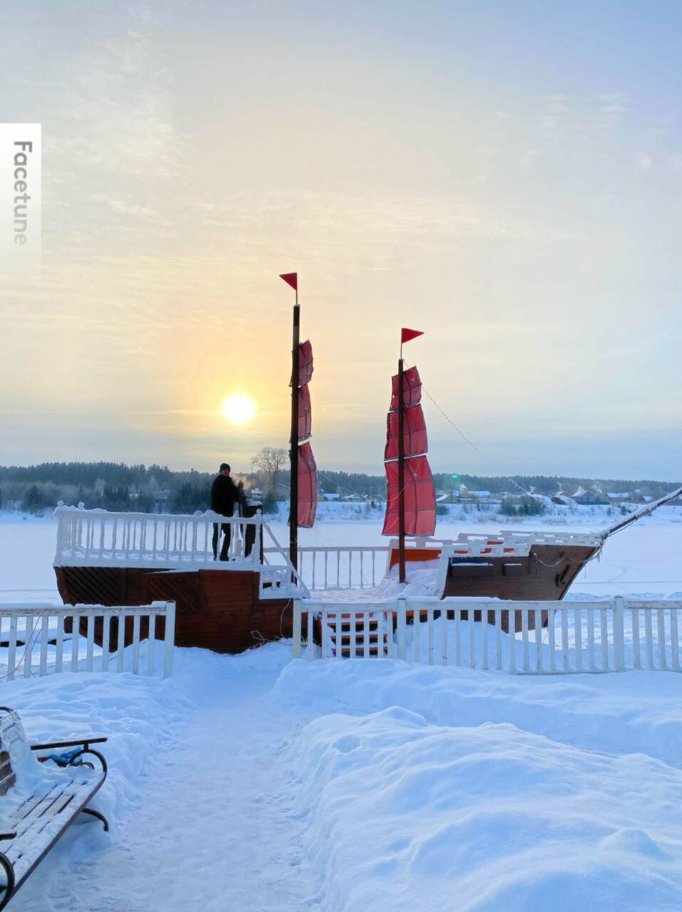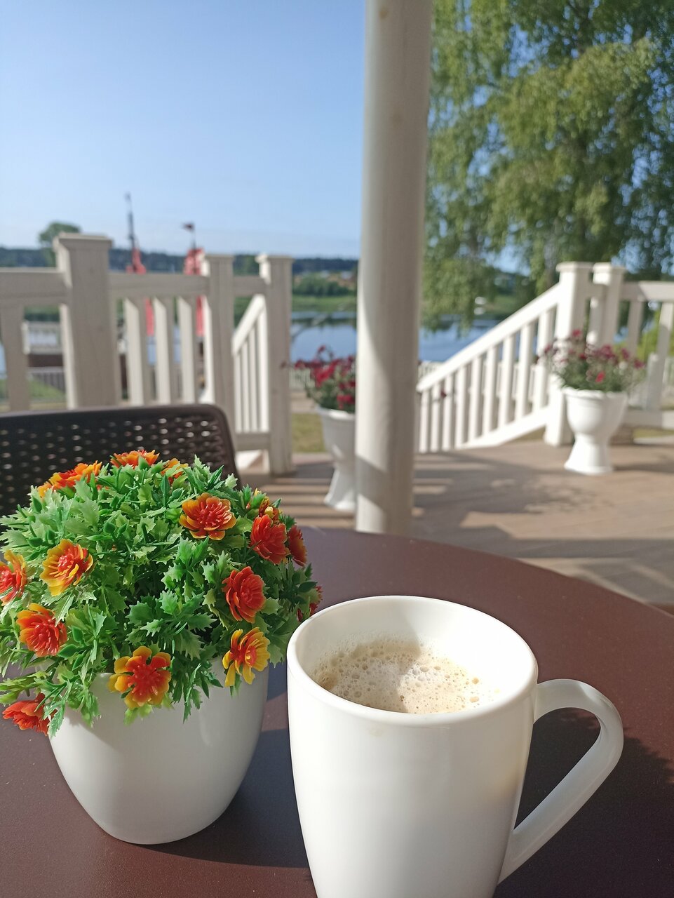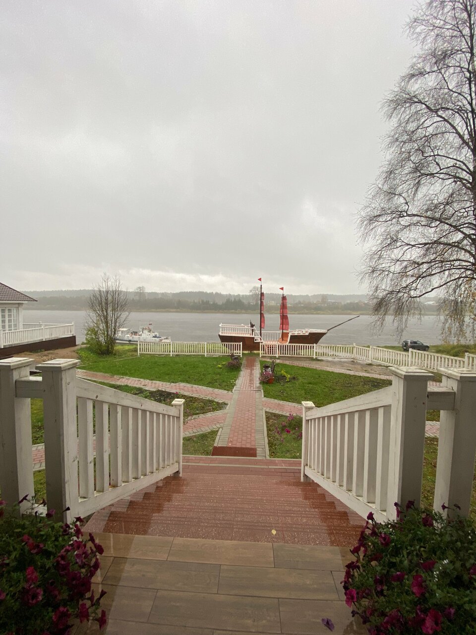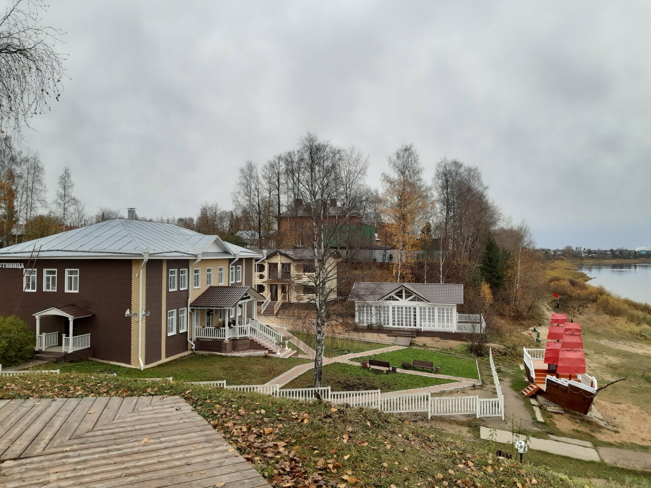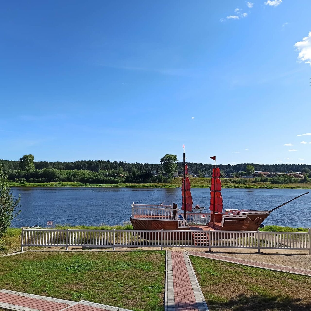 Берег реки, парусник, уютно, чисто, приветливый персонал. Очень понравилось.