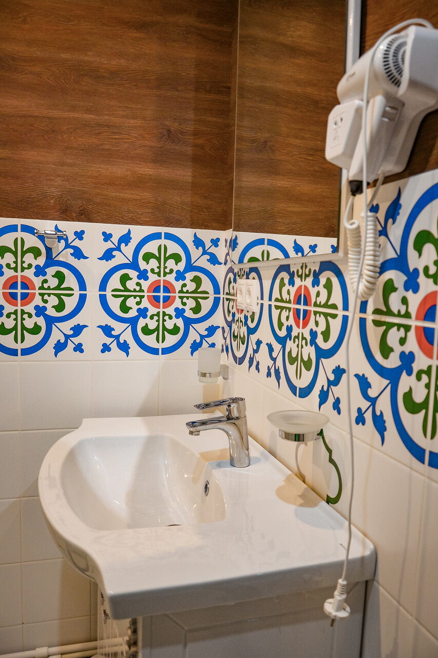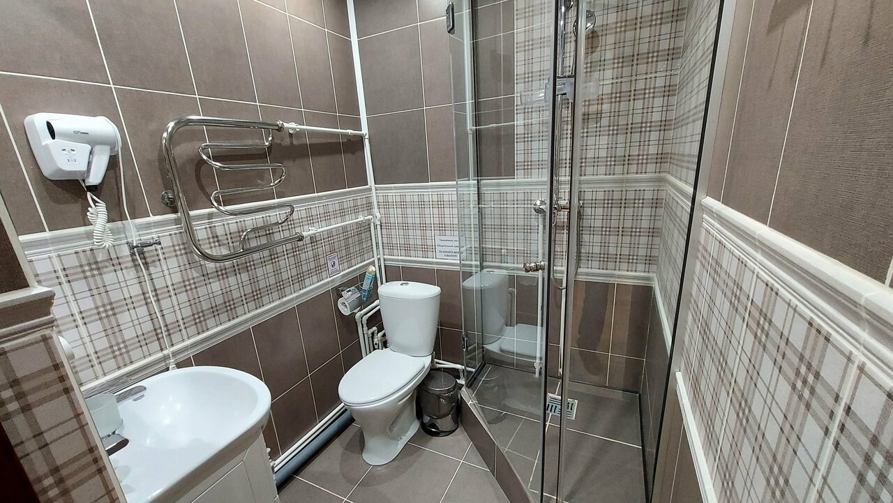 Двухместный номер с возможностью установки дополнительного спального места. В ванной комнате душ и туалет, имеются туалетно-косметические принадлежности, фен.