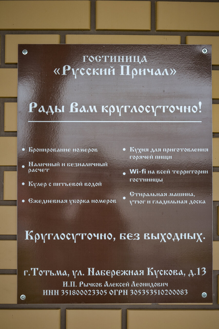Отель Русский причал в Тотьме по адресу набережная Кускова, 13: официальный сайт, цены, отзывы и рейтинг посетителей, телефон, адрес.