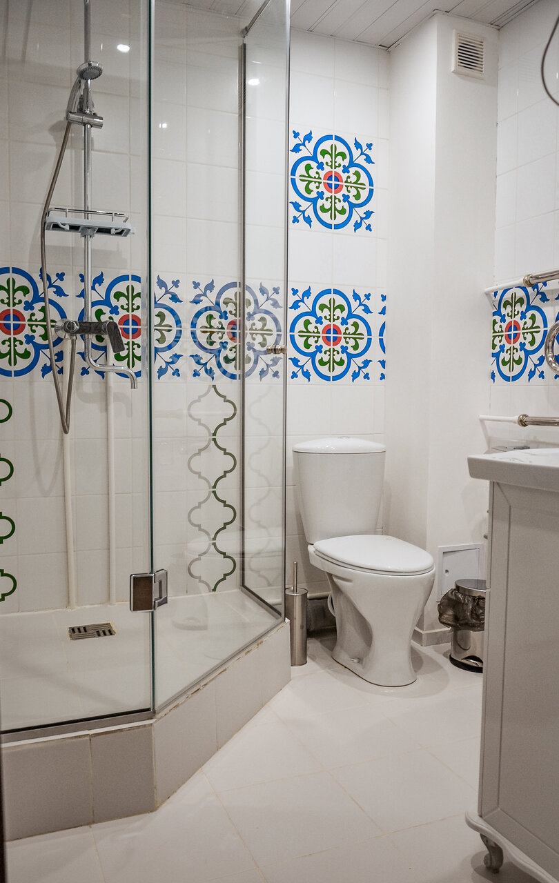 - Душевые кабины с известковым налетом и запахом канализации.