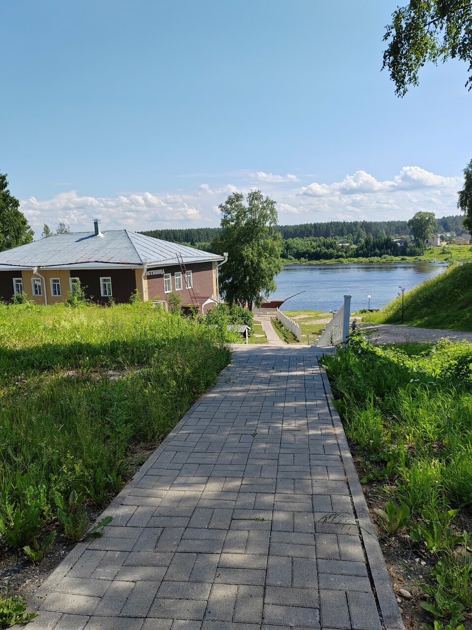 - Расположение на берегу реки.