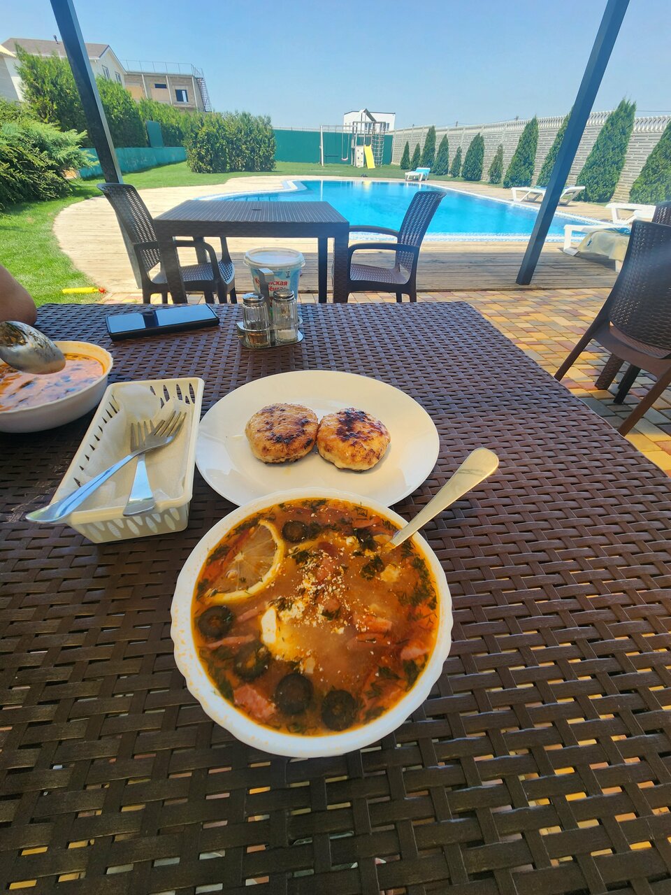 Место шикарное, тихо, спокойно. Кто желает отдохнуть от городской суеты, Вам сюда. Хозяева отзывчивые, милейшие люди. До моря реально минут 10 неторопливым шагом. Пляж чистый, для детей просто огонь, мелководье, вода чистая без всякой тины и водорослей. Еда вкусная и порции большие. На территории бассейн с подогревом, если на море идти лень. Писать можно долго. В целом можно сказать, ни минуты не пожалели что выбрали это место. На следующий год планируем приехать опять. Р. S.Ольга спасибо Вам огромное за гостеприимство.