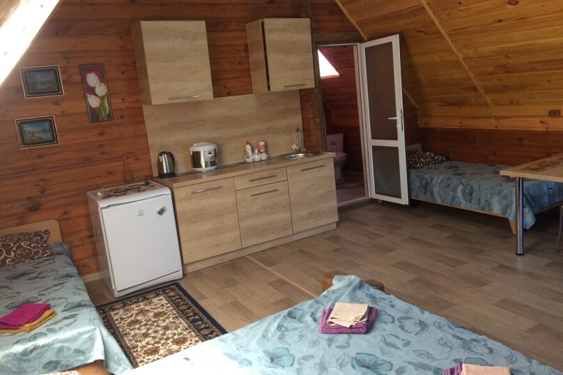 К услугам проживающих: номера с телевизором, холодильником, чайником, феном и вентилятором, общая кухня, Wi-Fi. На территории есть терраса, детская и пикниковая площадки, парковка. Допускается проживание с животными. Гостевой дом находится рядом с морем, работает круглосуточная стойка регистрации. Питание не включено.