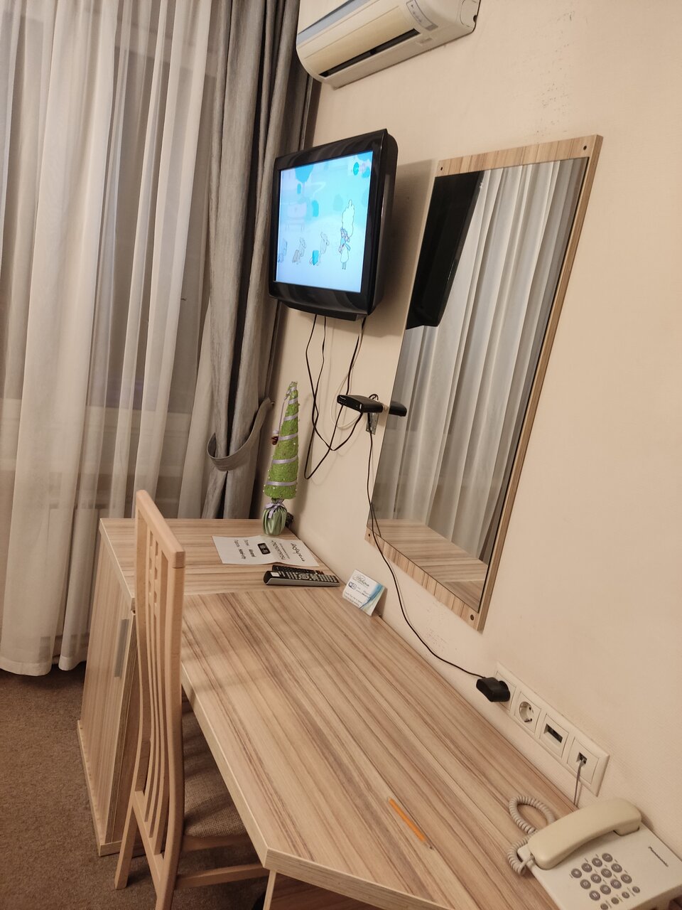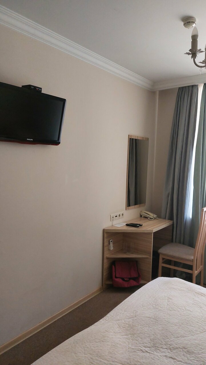 Отель на заявленные 4 звезды, конечно, не тянет. Номера по задумке симпатичные, но уже требуют реновации, стены и ковролин уже потертые с пятнами, в душевой тоже подтеки. В целом номер убран чисто, но указанные моменты портят впечатление. Место достаточно удобное, недалеко от центра, в пешей доступности достопримечательности. Персонал вежливый. На ночь можно остановиться.