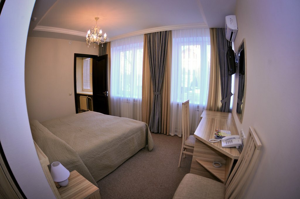Современный яркий номер с оформлением в оливковом цвете.Оборудован большой кроватью, прикроватными тумбочками, вместительным шкафом, универсальным столом со стулом, ЖК телевизором, кондиционером, сейфом, телефоном с прямой международной линией....