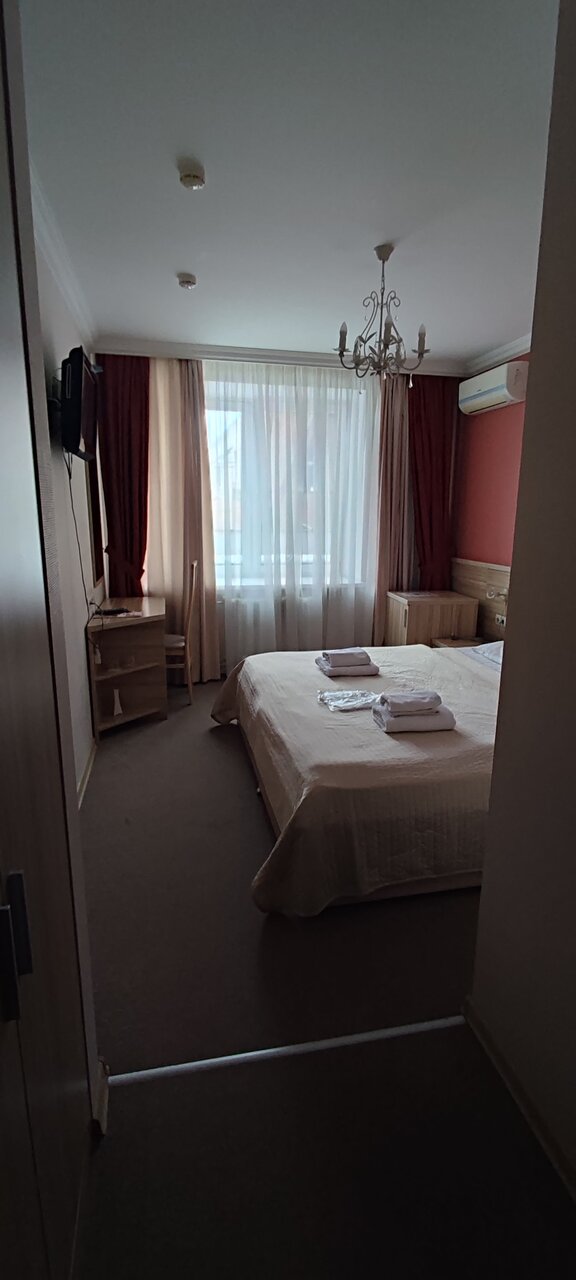 Ремонт хороший , парковки у входа нету ( т.к отель находиться в многоэтажке ) все занято тем Болие ночью , оплаты картой нету . И все номера Только двух местные ! Когда мы звонили за пол часа в ночи искали где поспать предупредили ,что мы с ребёнком ( по приезды на нас смотрят и говорят , где вас поселись может другой отель, говорит -не далеко тут !!! Ну или можем дать раскладушку ) других мест нету на 3 человека