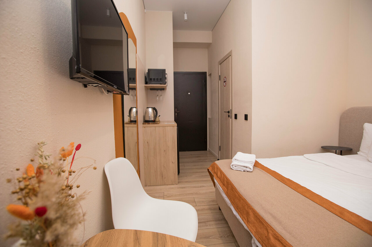 Хороший мини-отель, красивый интерьер, на телевизоре есть Кинопоиск и другие стриминг-сервисы, в номере есть чай и кофе, было даже жарко (на ночь открывали окно), уютная ванная со всем необходимым, предоставили одноразовые тапочки, зубные щетки, одноразовые гели и шампуни, заказывали завтрак (ничего особенного), но это уже не зависит от отеля, как я понимаю