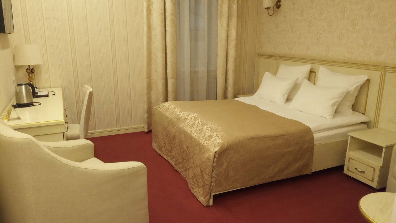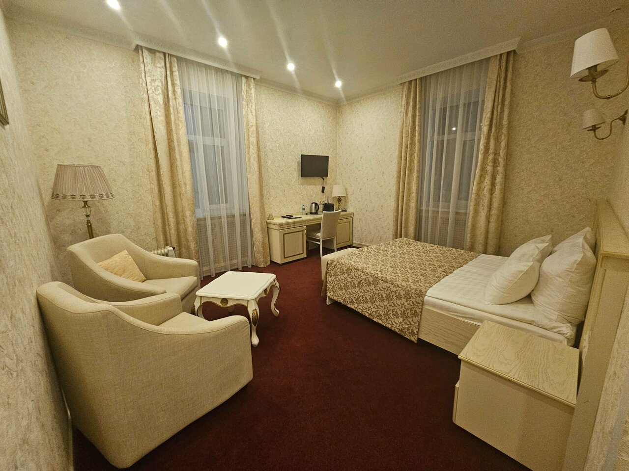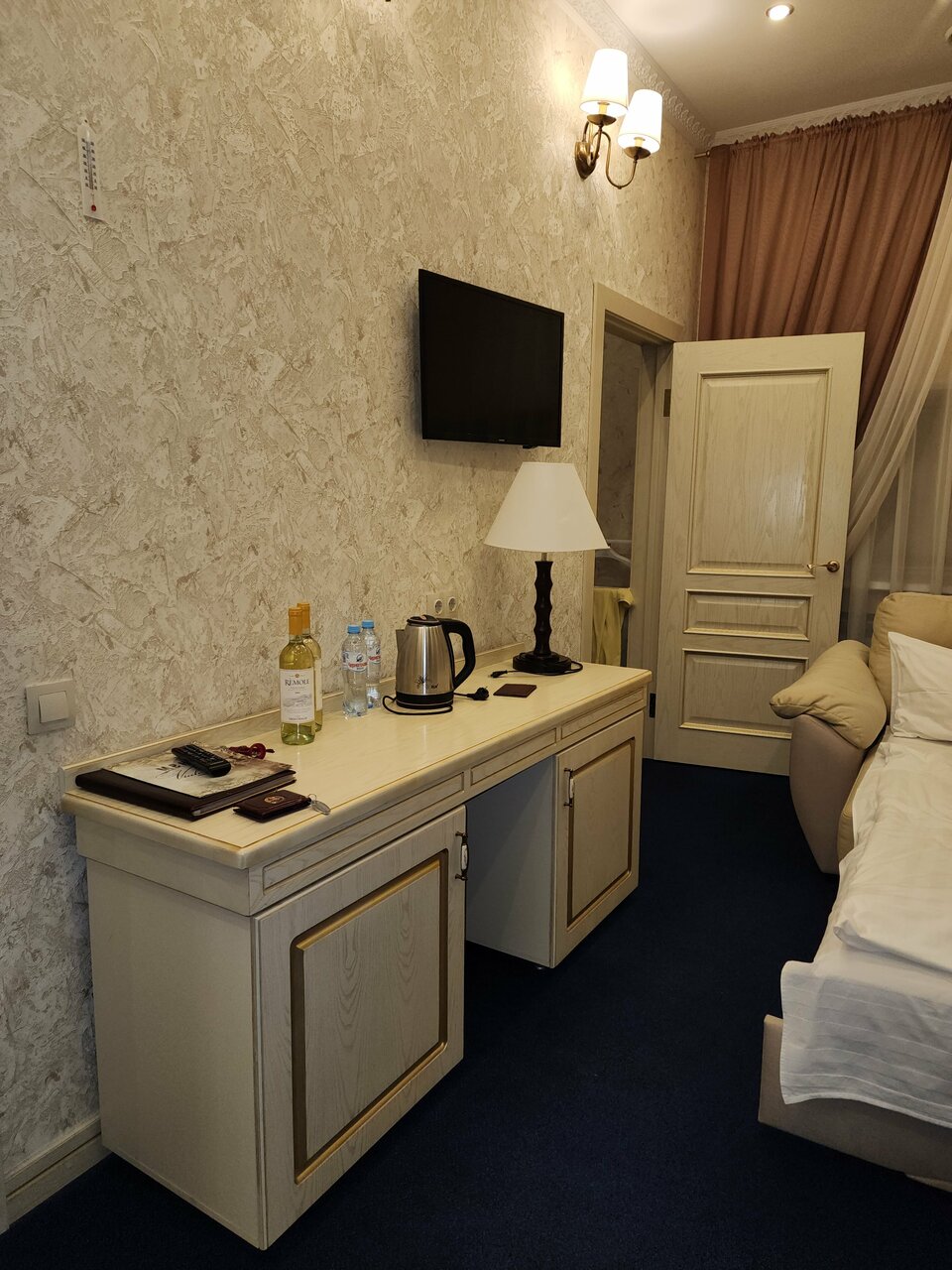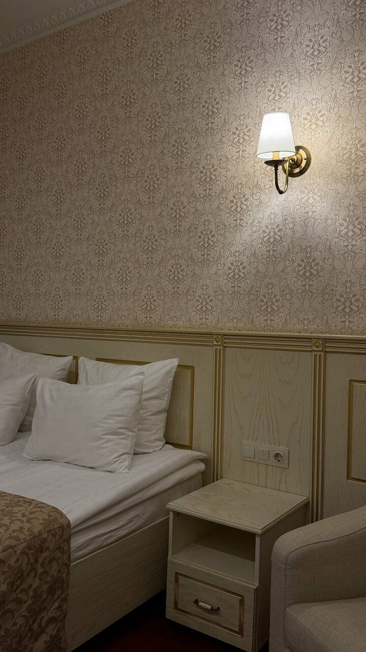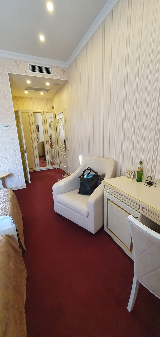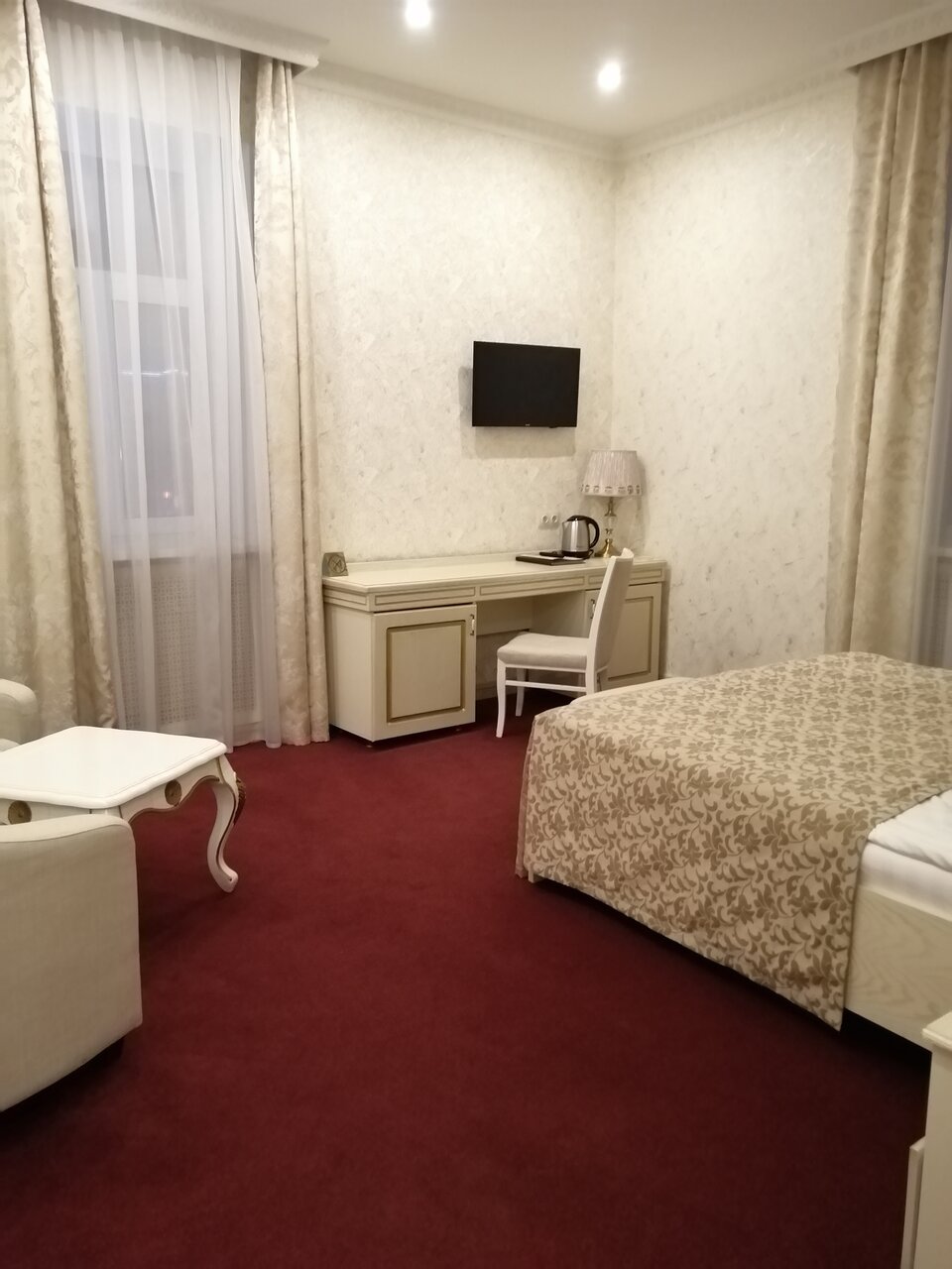 Дорогие будущие проживающие! У меня большой гостиничный бизнес. По воле судьбы пришлось остановится в этом отеле. Рассказываю: В отеле приятная спокойная обстановка В номерах чисто даже если протереть белой салфеткой Интерьер классический просто дорого и со вкусом Заказала в номер ужин приготовили согласно времени которому положено т.е. 30-40 мин.приготовлено очень вкусно. Персонал приветливый., обходительный. Отель заслуживает свои четыре звезды. Рекомендую всем.