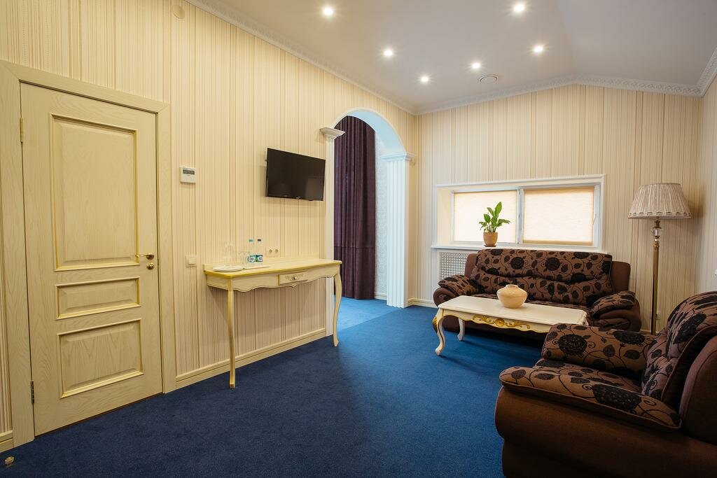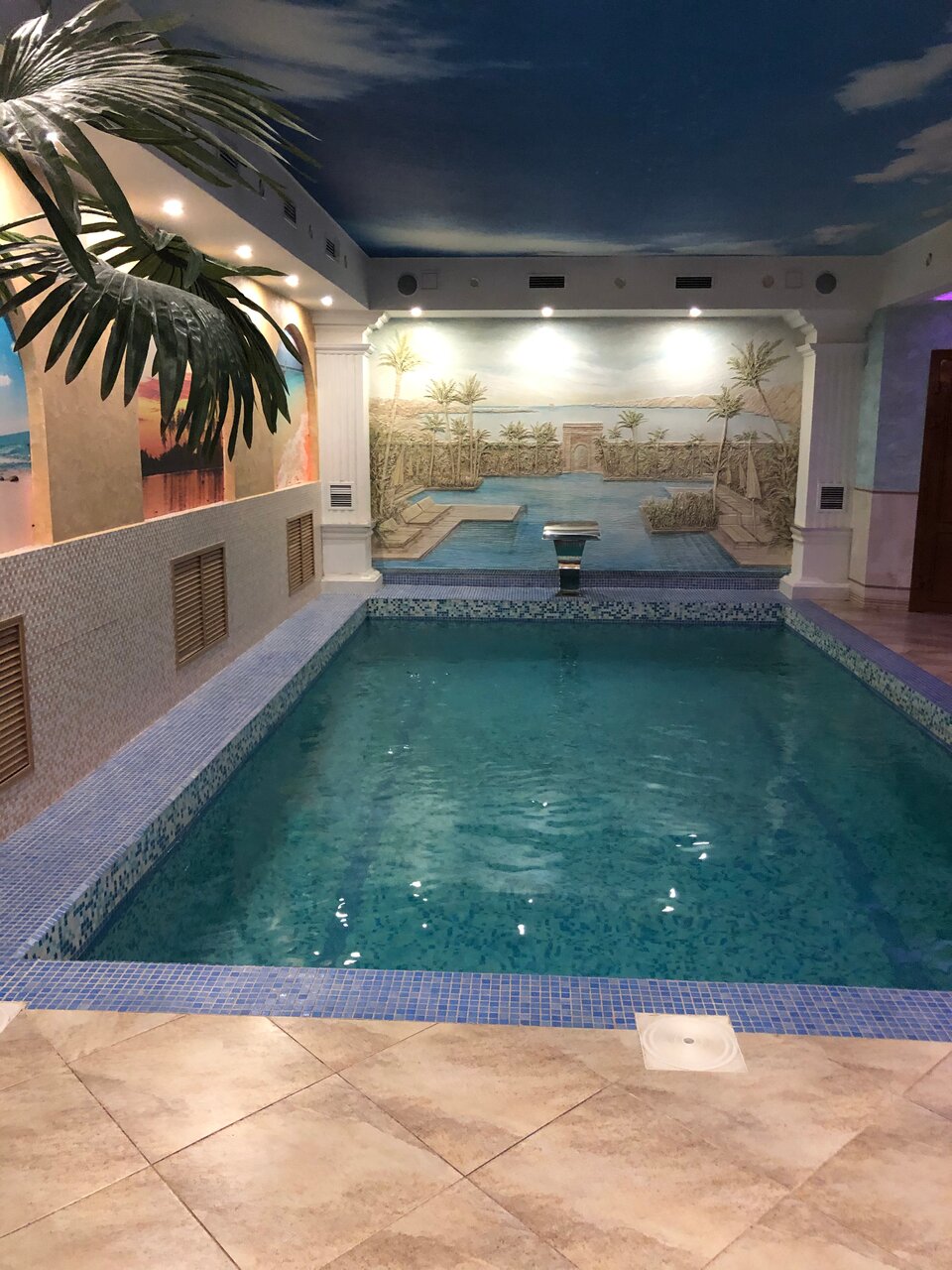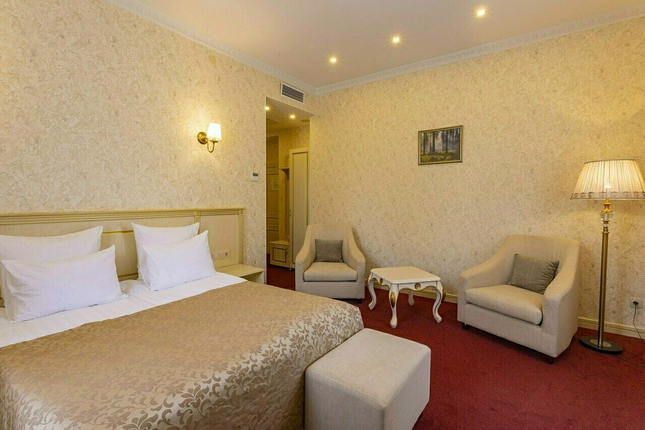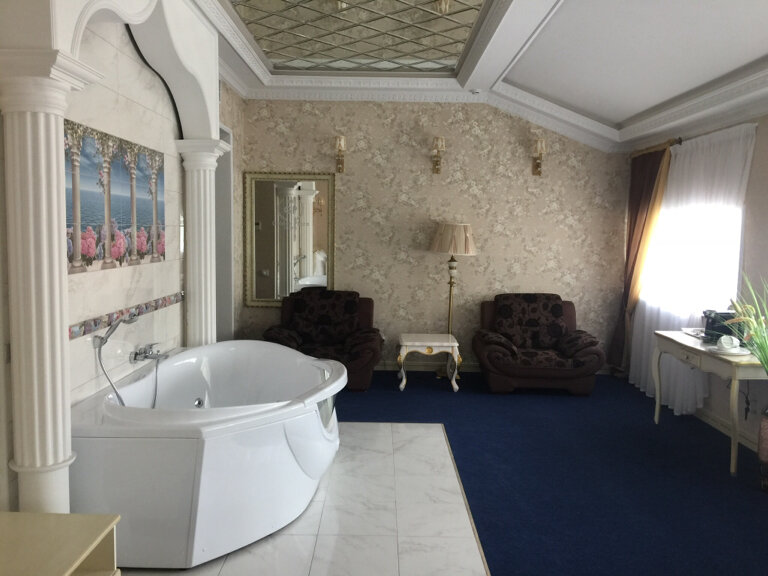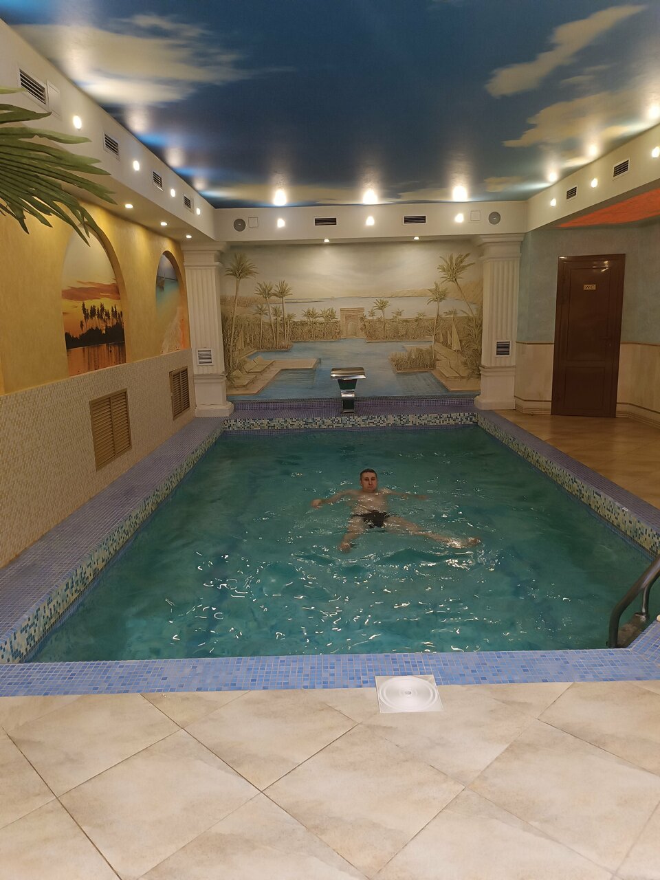 Останавливались в номере Эксклюзив, с джакузи в комнате. В целом номер неплохой, но грязноватый, в джакузи были волосы, пришлось просить помыть с дез средством. В номере стены картонные, будьте готовы, что слышно соседей очень сильно. Были с 1 по 2 января, никто не предупредил, что ресторан работать не будет. Бассейном воспользоваться невозможно, если вы не бронировали это за месяц по предоплате. Матрас на кровати подавлен и проваливается, спать было почти невозможно, скатывались и прогуливались. Посмеялись над халатам в ванной)) Ну расчитаны они на 44 размер максимум. Мужчине 46 размер он только в качестве наберденной повязки подойдет)))) Завтрак так же разочаровал, очень очень скудный. Если вы конечно привыкли на завтрак есть бекон,сосиски,картошку,салями, то да, вас все устроит. В целом, разочаровал больше, чем порадовал. За 9000 все же не тот уровень отеля.
