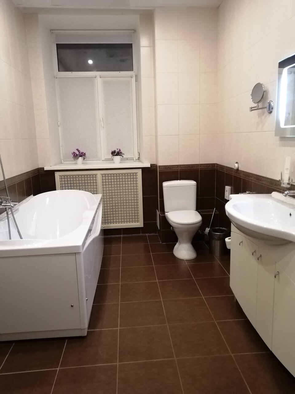Месторасположения отличное. Большая ванная. Отделка интерьеров дорогая. Из минусов продавленный диван в комнате и нежесткий матрац.