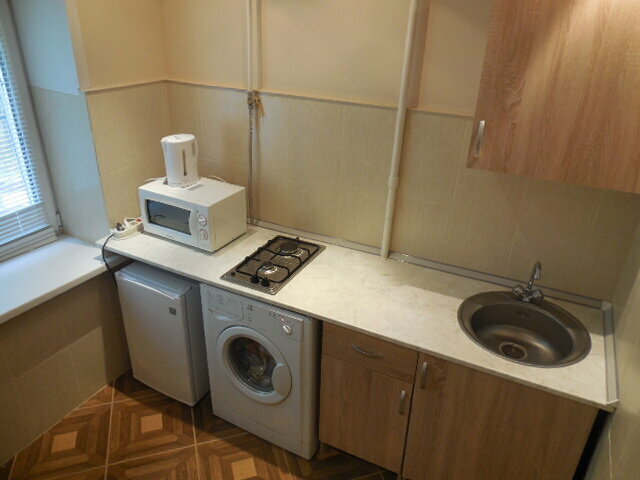 2х комнатная квартира эконом класса для размещения 4 человек на раздельных спальных местах (2 кровати 2 дивана).В квартире простой косметический ремонт,кухня с минимум посуды и столовых приборов с микроволновкой,холодильником,стиральной машиной.