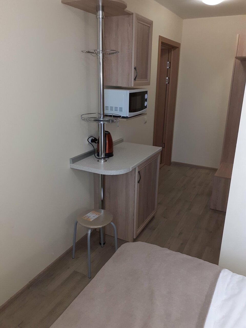 - Хорошие номера с удобствами (холодильник, микроволновка, чайник, душ, туалет).