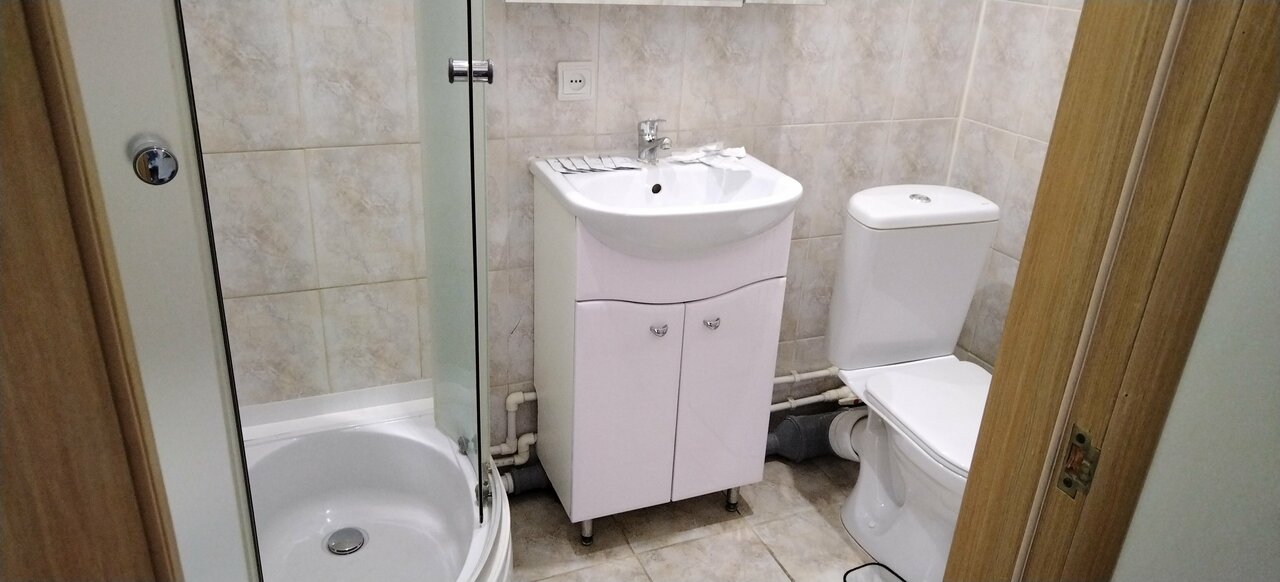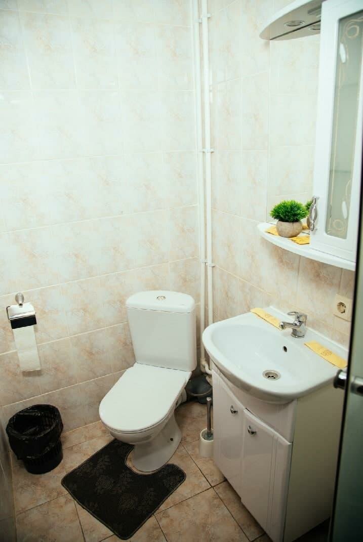 Чистота на 5, свежий ремонт, оценку снижаю за отсутствие отопления, дают обогреватели, но они вообще ни о чем.. также замечу, что дом шатается, заметила по толчкам и по бутылке воды на столе, вода в которой постоянно болталась…не очень комфортно и страшновато, хоть и здание трехэтажное