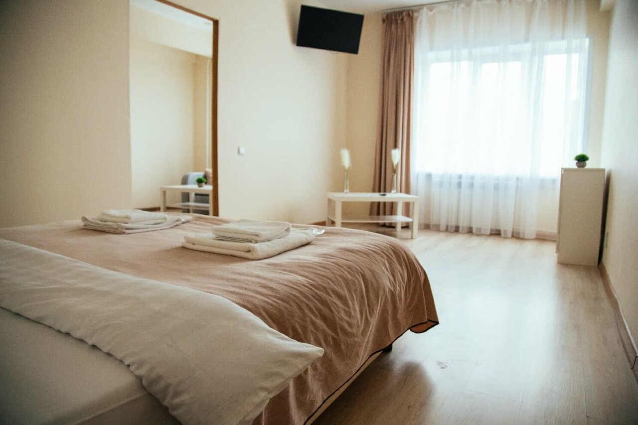 Очень комфортные номера с белоснежным бельем!! Есть личный санузел с душевой кабиной,предметы личной гигиены,махровые полотенца! Кровати супер удобные,не хочется с них вставать! Тихий спальный район прямо в центре города!!! Всем рекомендую!!!