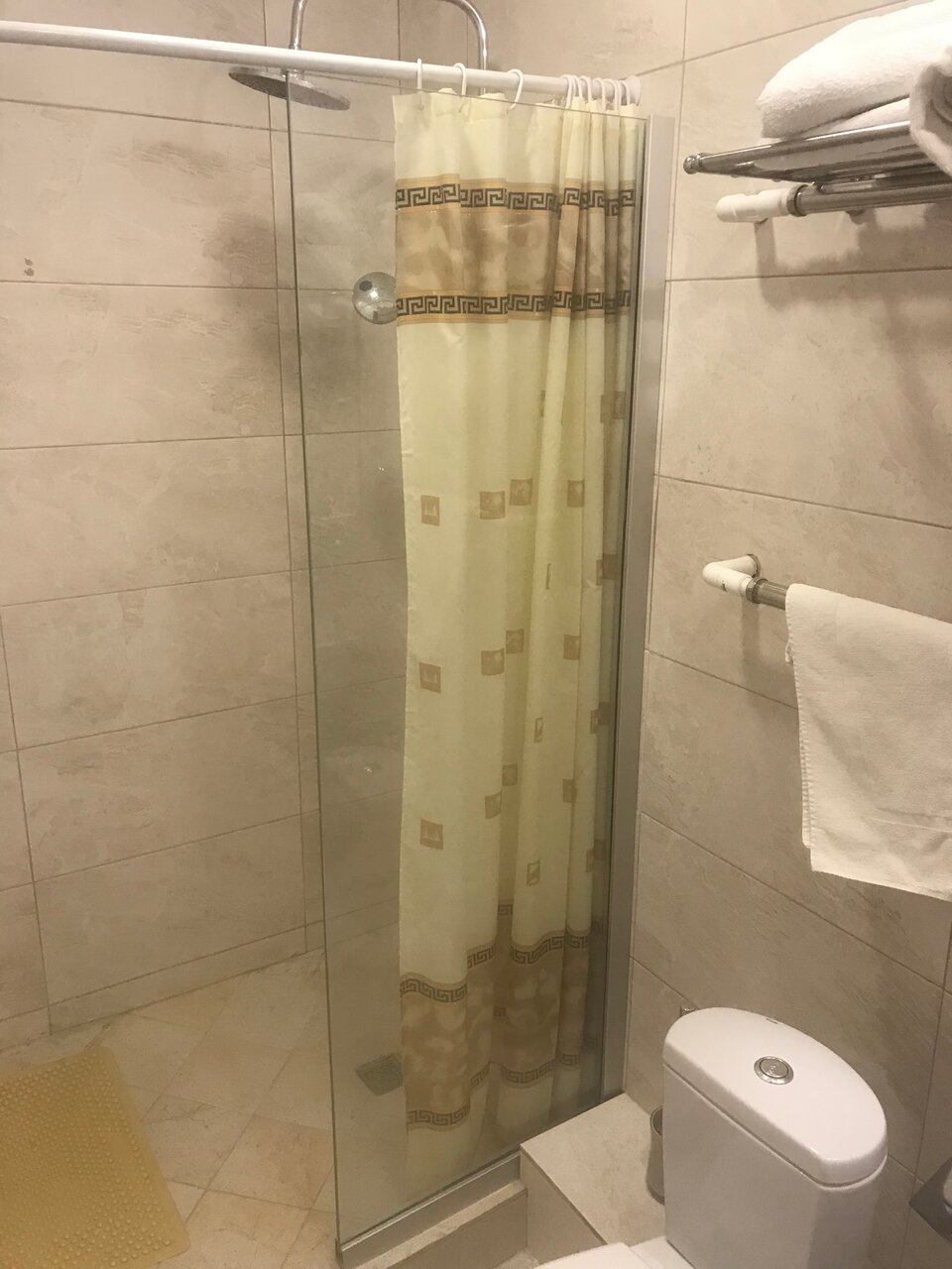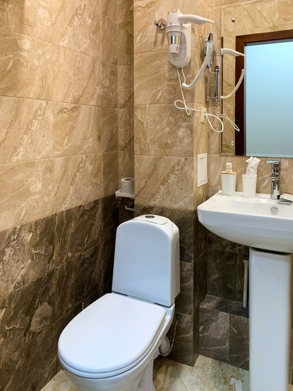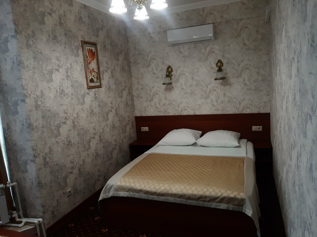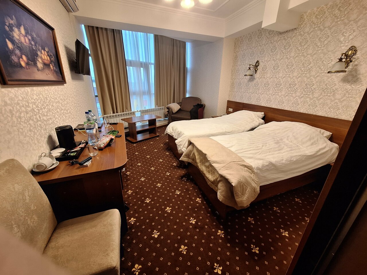 Гостиница полностью соответствует своим трём звёздам. Мебель новая, кровать удобная, ванная комната хорошая. Телевизор с интернетом. Есть завтрак который отвечает минимальным требованиям. Кофе машины нет и предлагается растворимый., что для меня лично неприемлемо. Но главный недостаток — очень холодно. Одна батарея была еле тёплая, а вторая холодная. На улице было -7С. А если будет — 20С, что тогда? Стены в номере просто ледяные. В результате холода спал плохо, настроение испортилось, ну и тд и тп. В гостинице есть баня и хамам, но я туда не ходил.