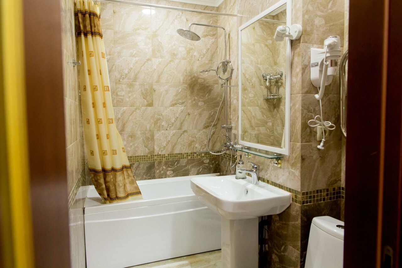 Номер 26 кв м с ванной или душем, двумя раздельными кроватями, с возможностью расположиться на доп месте.Завтрак включен в стоимость!В номере холодильник, телевизор, фен, халаты, тапочки, гигиенические наборы.