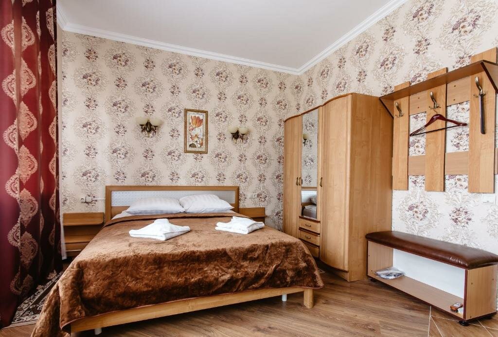 Номер 19 кв м с душем, с одной большой кроватью, с возможностью расположиться на доп месте.Завтрак включен в стоимость!В номере холодильник, телевизор, фен, халаты, тапочки, гигиенические наборы.