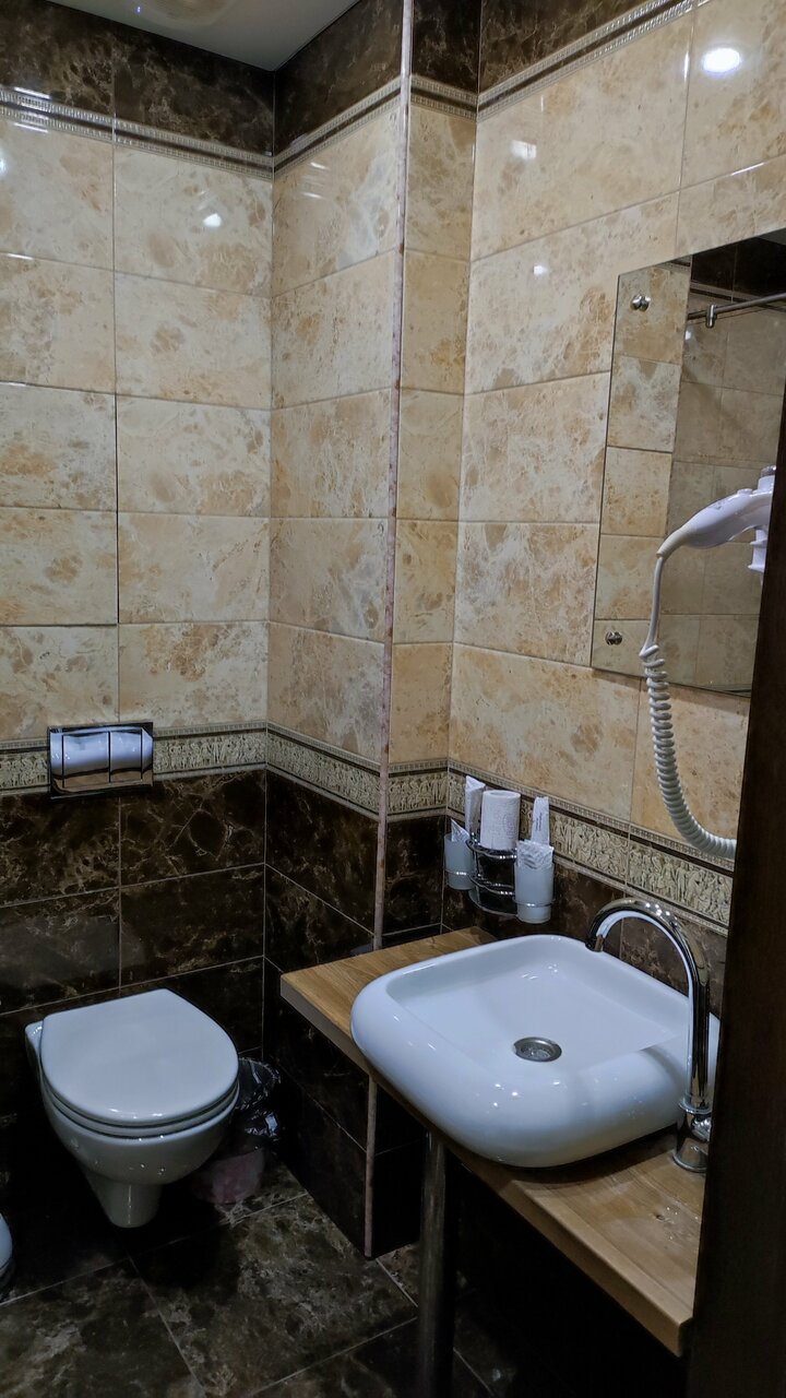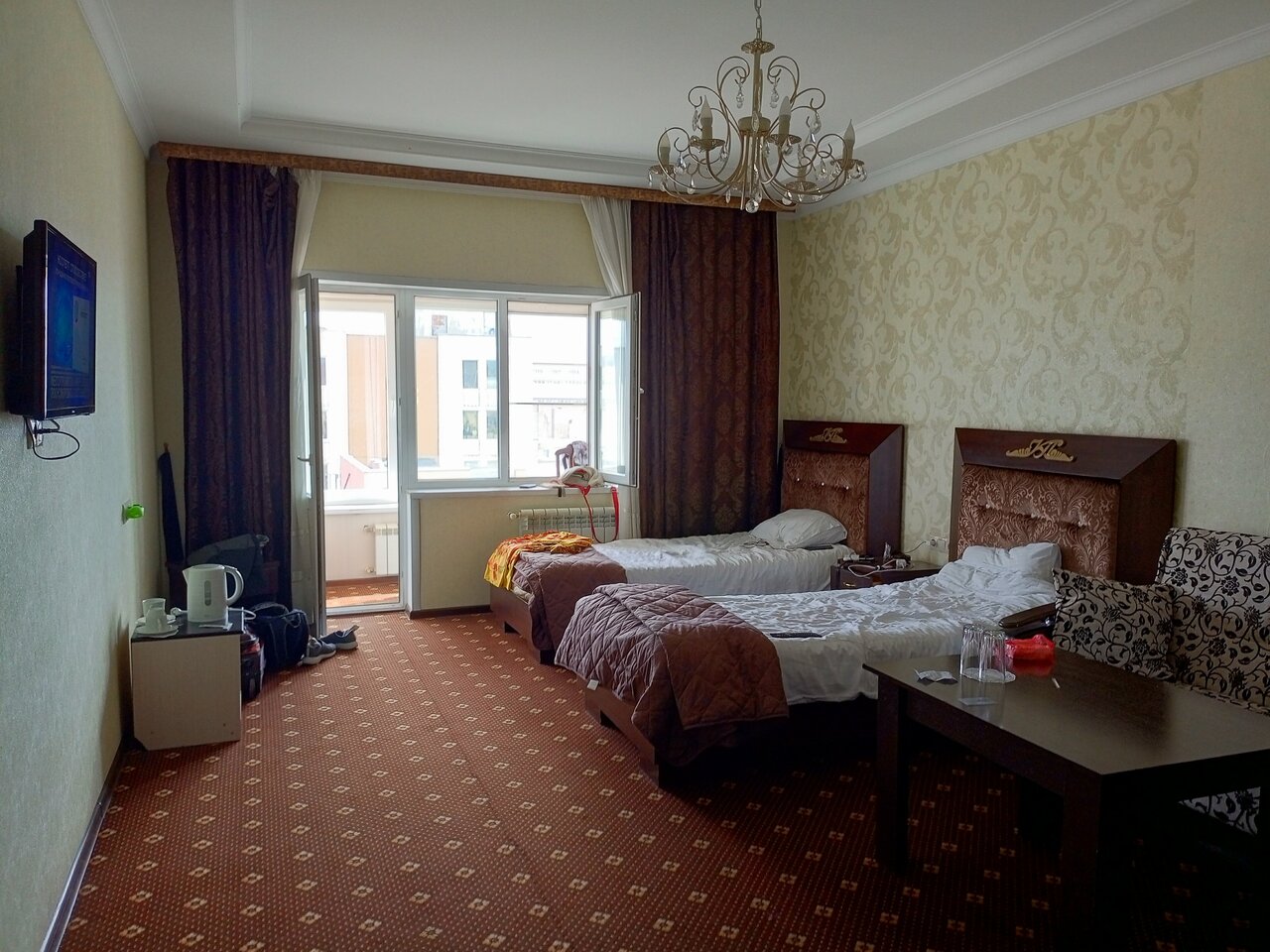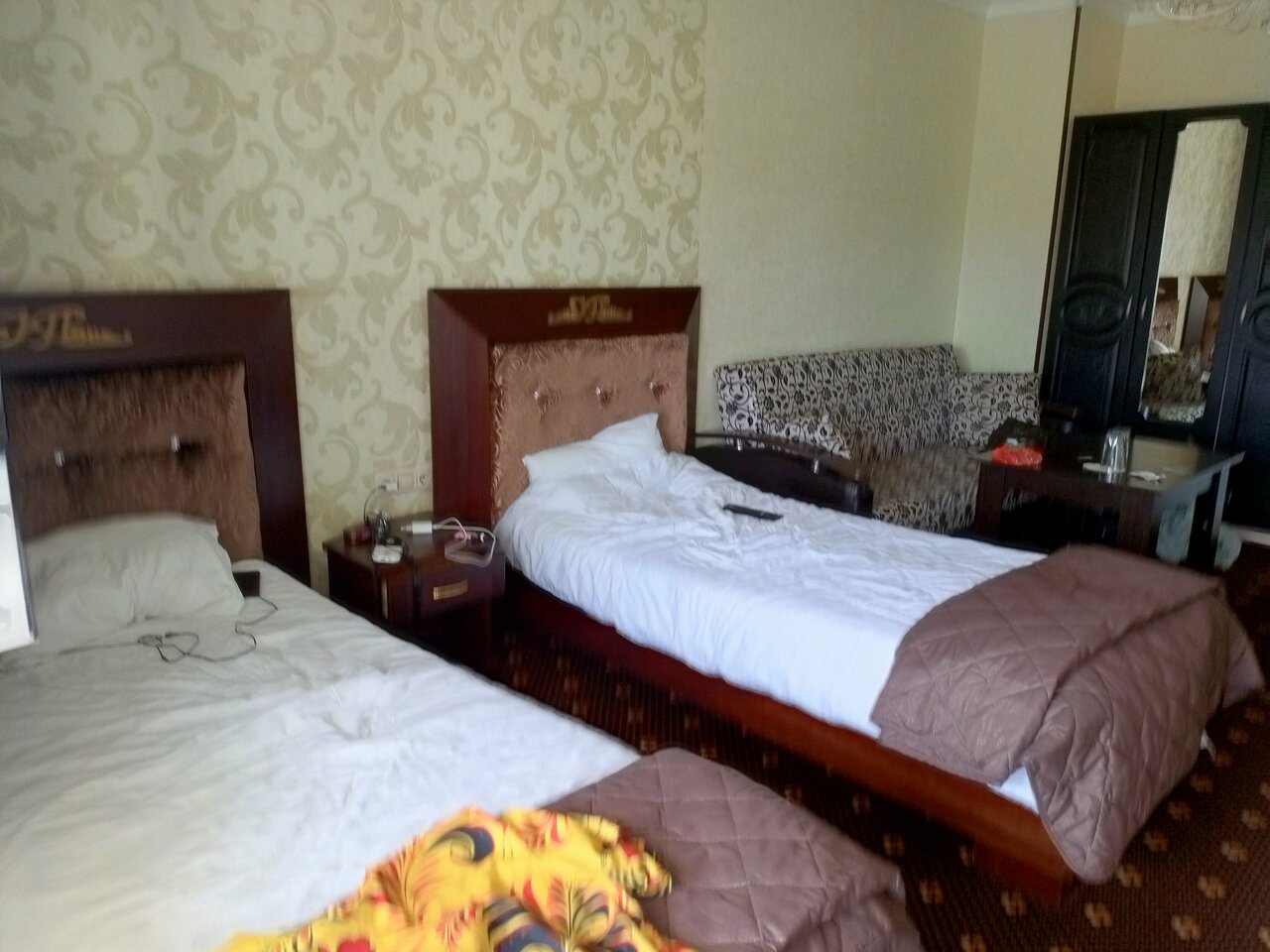 Номер понравился, чисто, приятно. Но, в здании отеля идёт ремонт, можно было наблюдать рабочих, инструменты и строительную пыль. По еде ещё хуже Садж, заказанный в ресторане, был мягко говоря невкусным. Мясо сухое, мелко порезанное, и просто плавало в масле. Лук тоже был темно-коричневого цвета, пережаренный в кашу. Обслуживание ниже среднего(много моментов не понравилось, описывать не буду). Ещё раз прийти в это заведения желания нет.