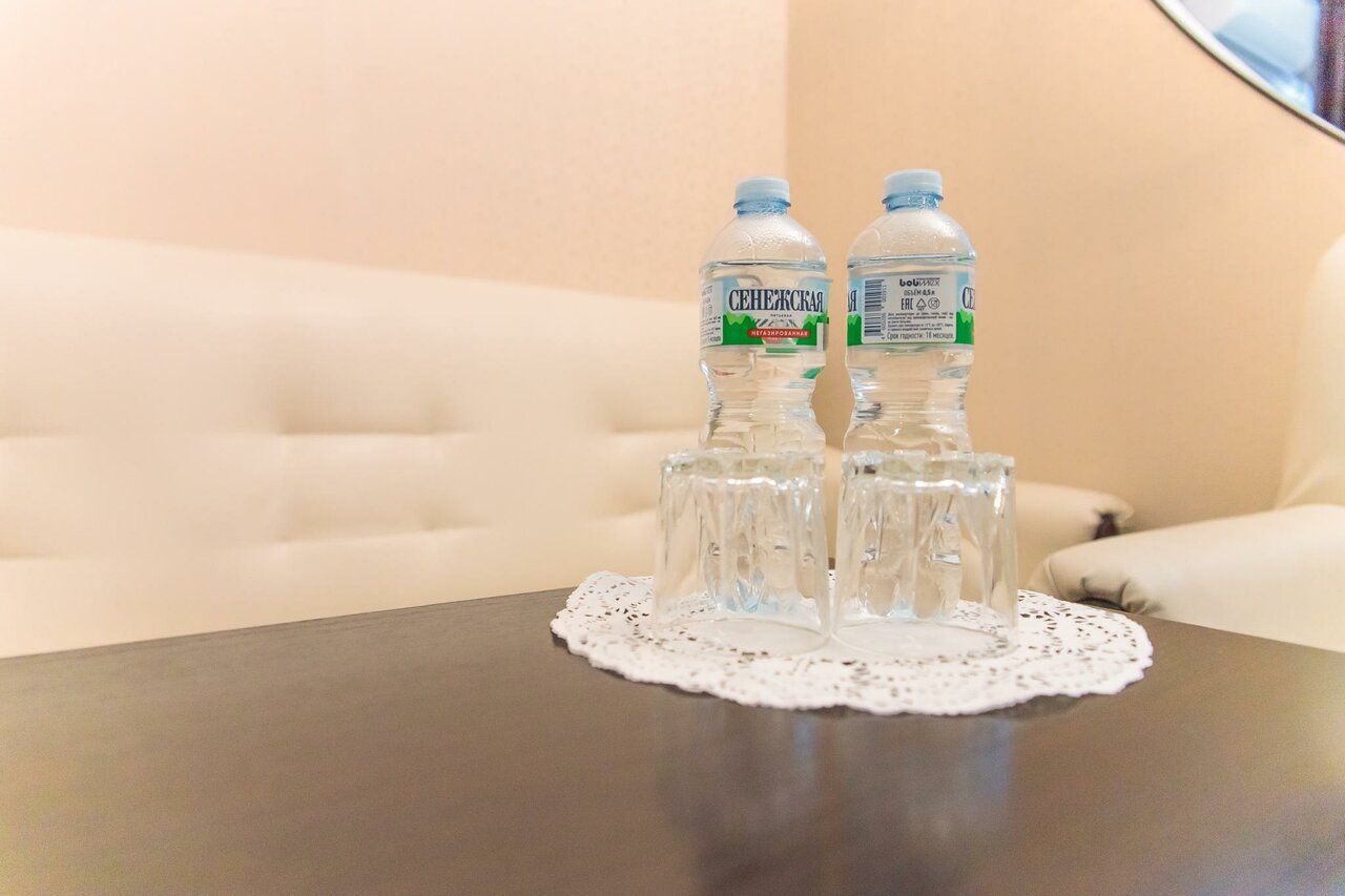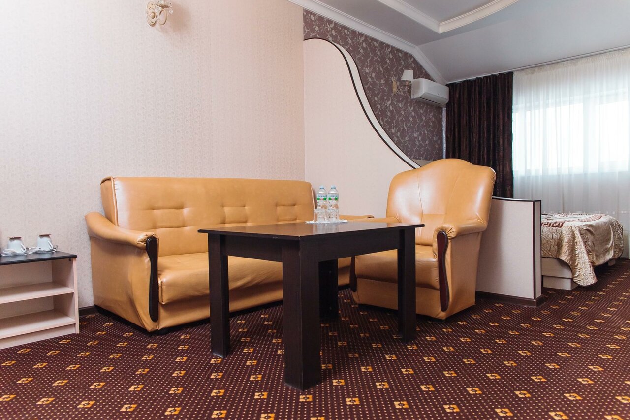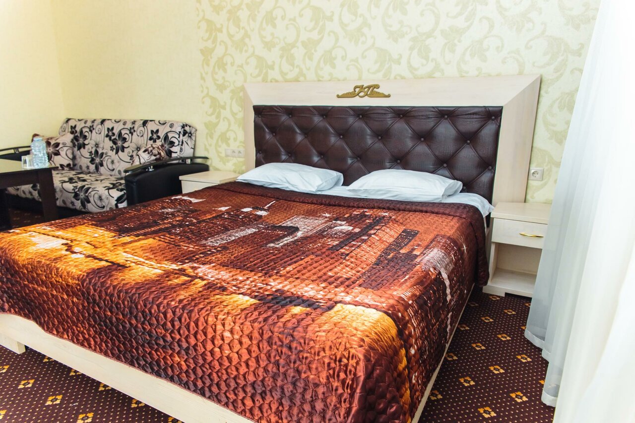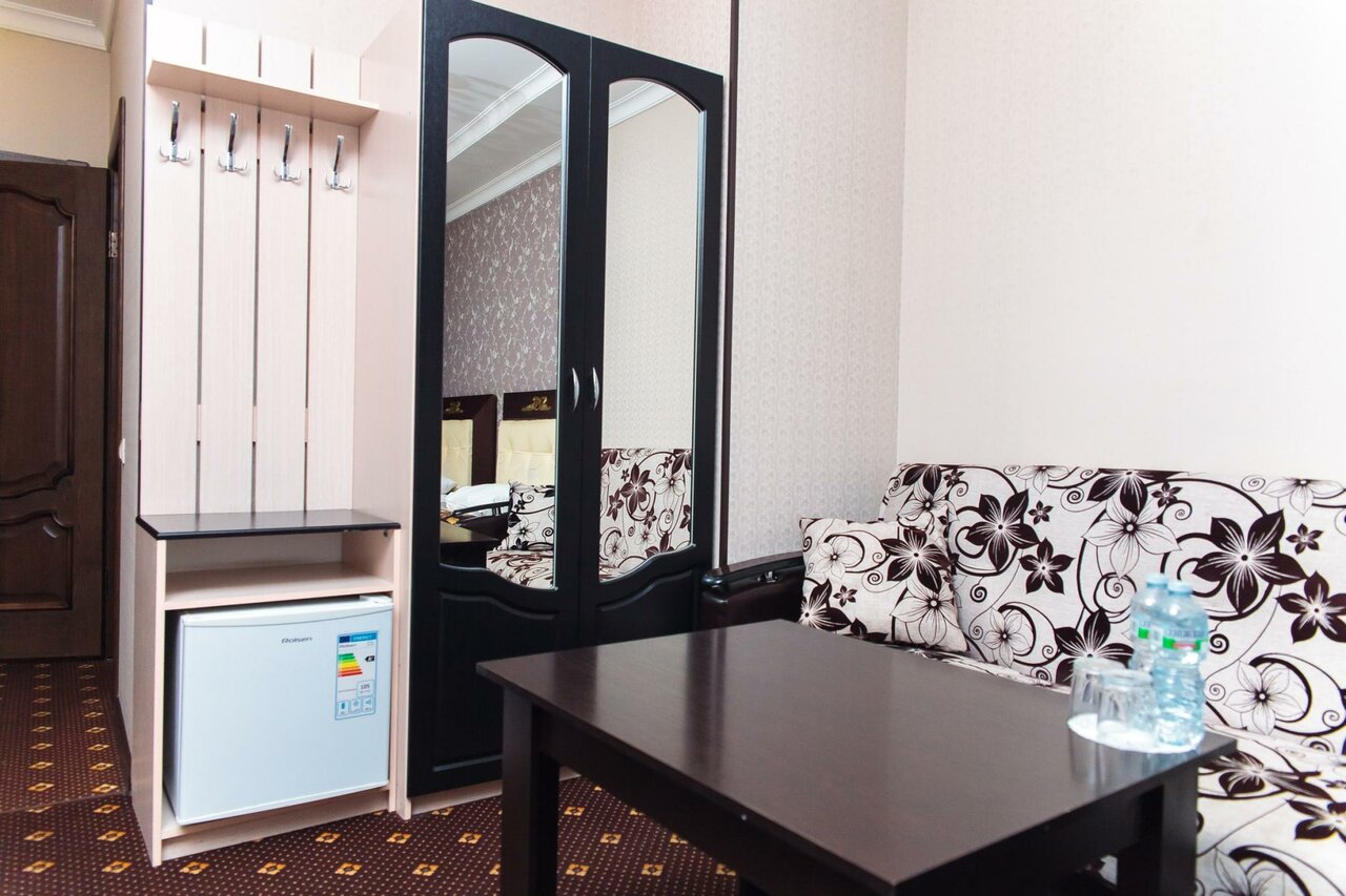 Двухкомнатный Полулюкс со всеми удобствами. В каждой комнате ЖК Телевизор, кабельное ТВ, Сплит-система. Шкаф для одежды. Санузел с ванной комнатой в номере. Фен. Сейф. Мини-кухня, холодильник. Детская кроватка.