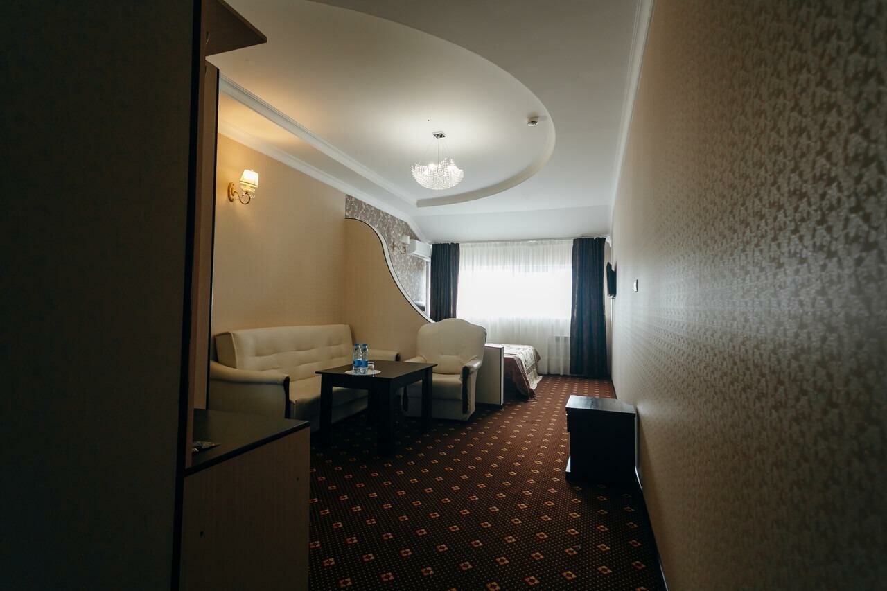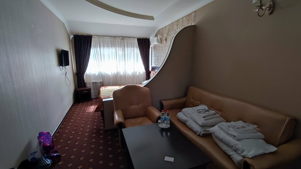 Чисто, уютно, в номере есть халаты/тапочки/вода вид из окна на овощебазу, но сам номер прекрасен! Очень вкусный и большой ресторан при отеле с кавказской кухней!