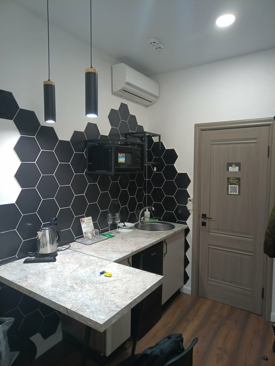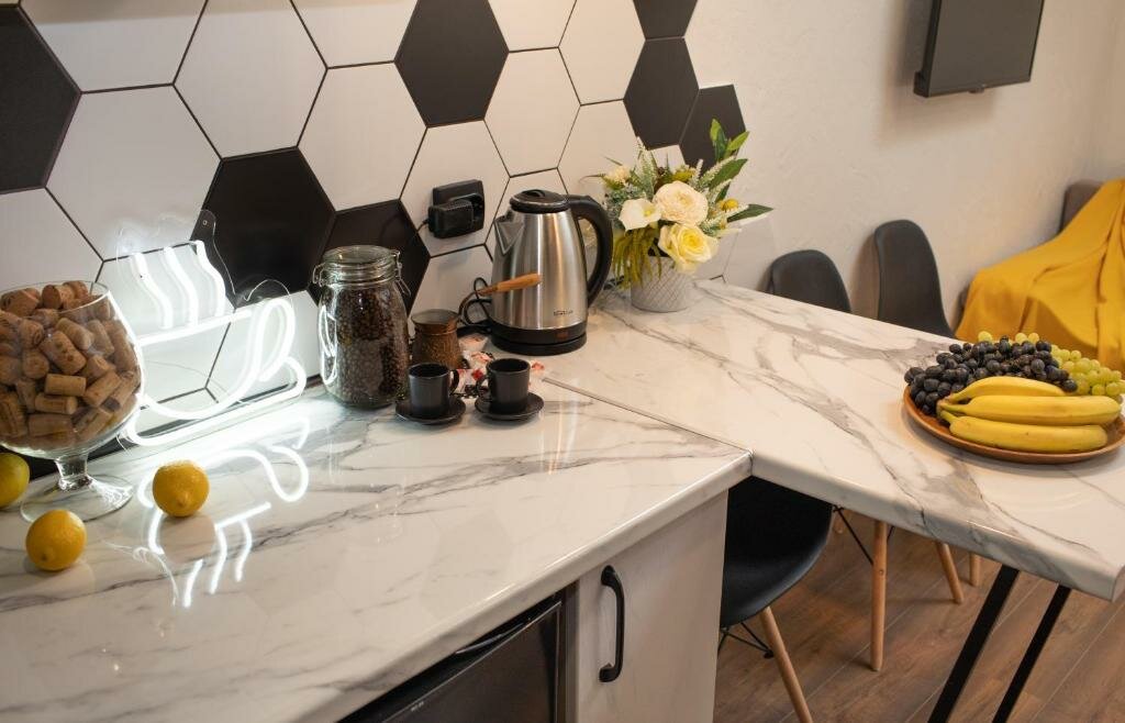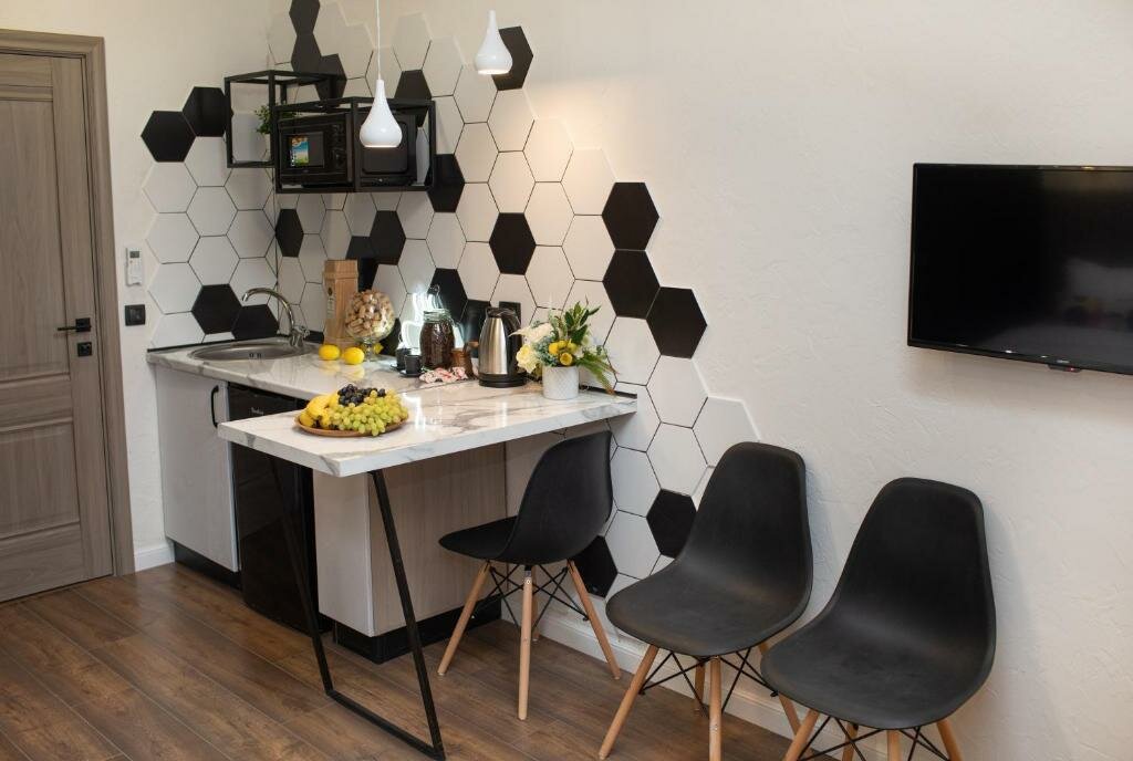Второй раз останавливались в этом отличном отеле. Номер на третьем этаже категории ‘Студио’ Очень комфортный, есть кухня, чистейший санузел, свежее хрустящее постельное бельё, кондиционер -что ещё нужно для комфортного отдыха. Очень вежливый и внимательный персонал, быстрое заселение, виден профессионализм сотрудников. Ну и, конечно же, вкуснейшие горячие завтраки, как дома! Шикарный дизайнерский интерьер. Обязательно порекомендуем Ваш отель знакомым и вернёмся снова! Процветания и успехов!!!