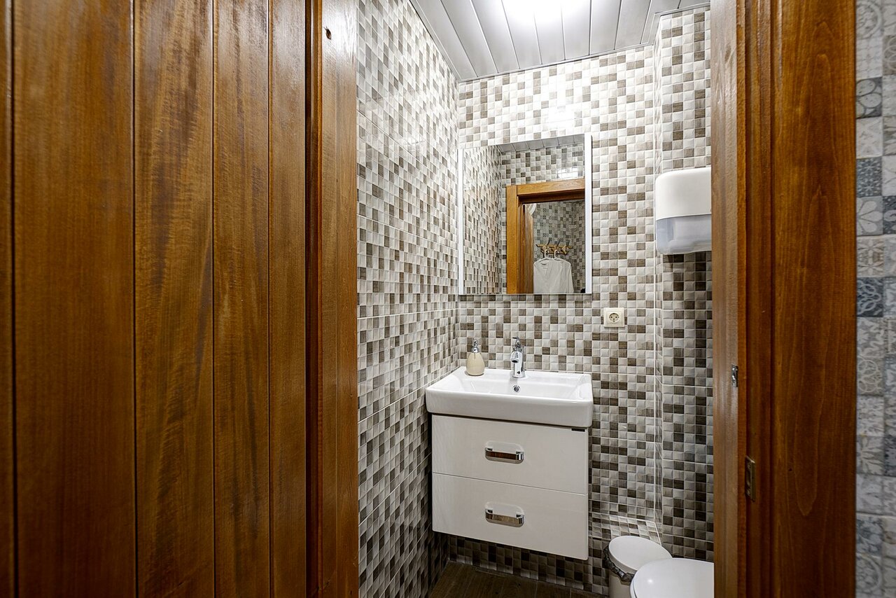 Услуги: — Номера с кондиционером, Wi-Fi, ТВ, холодильником, чайником, феном. — Кухня/кухонный уголок, микроволновка, плита, сейф. — Сауна, баня, хаммам (халаты, тапочки). — Парковка, проживание с животными (платно). — Ускоренный заезд/выезд (14:00 / 12:00).