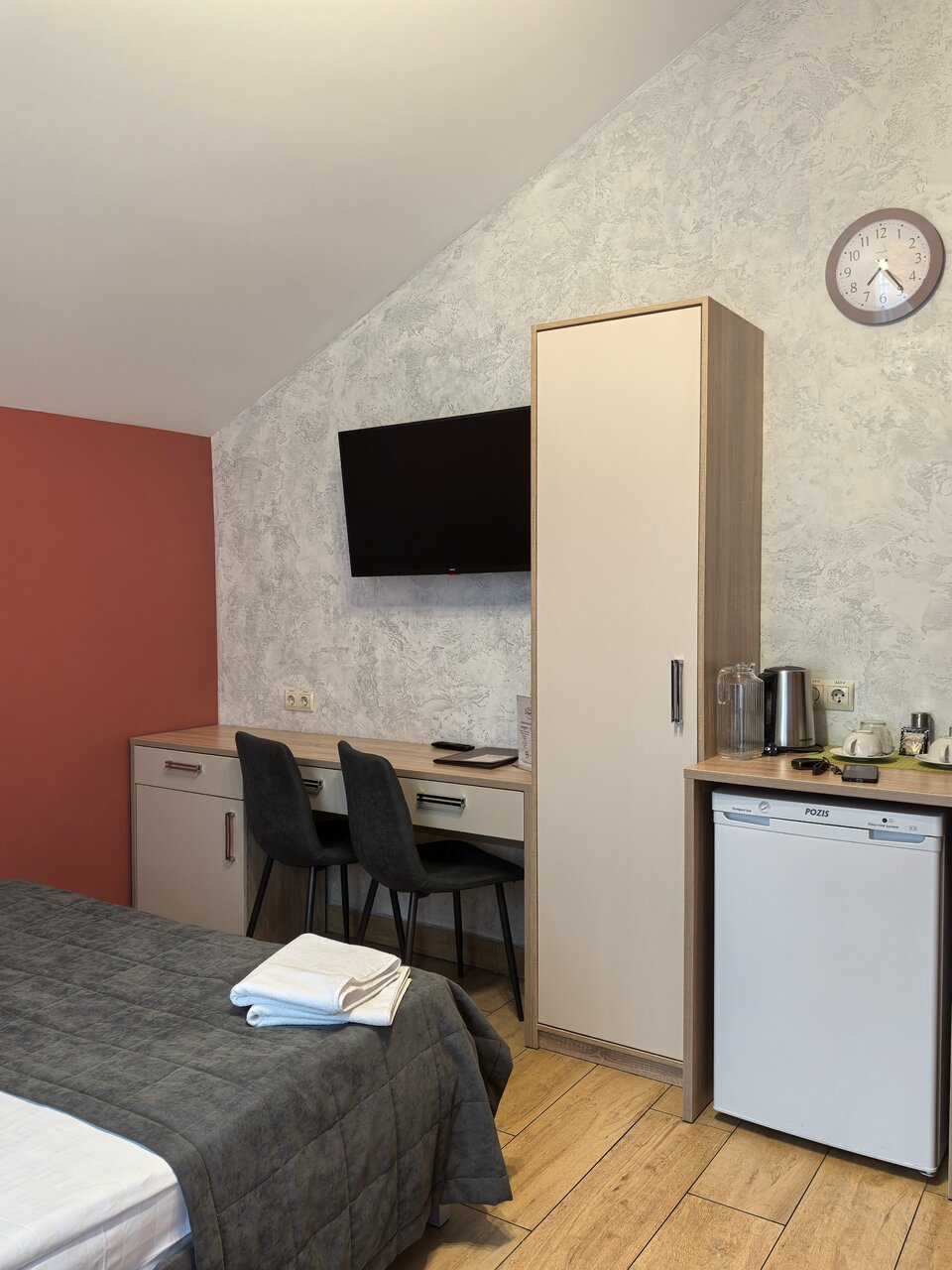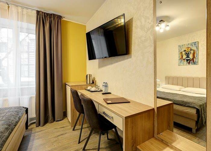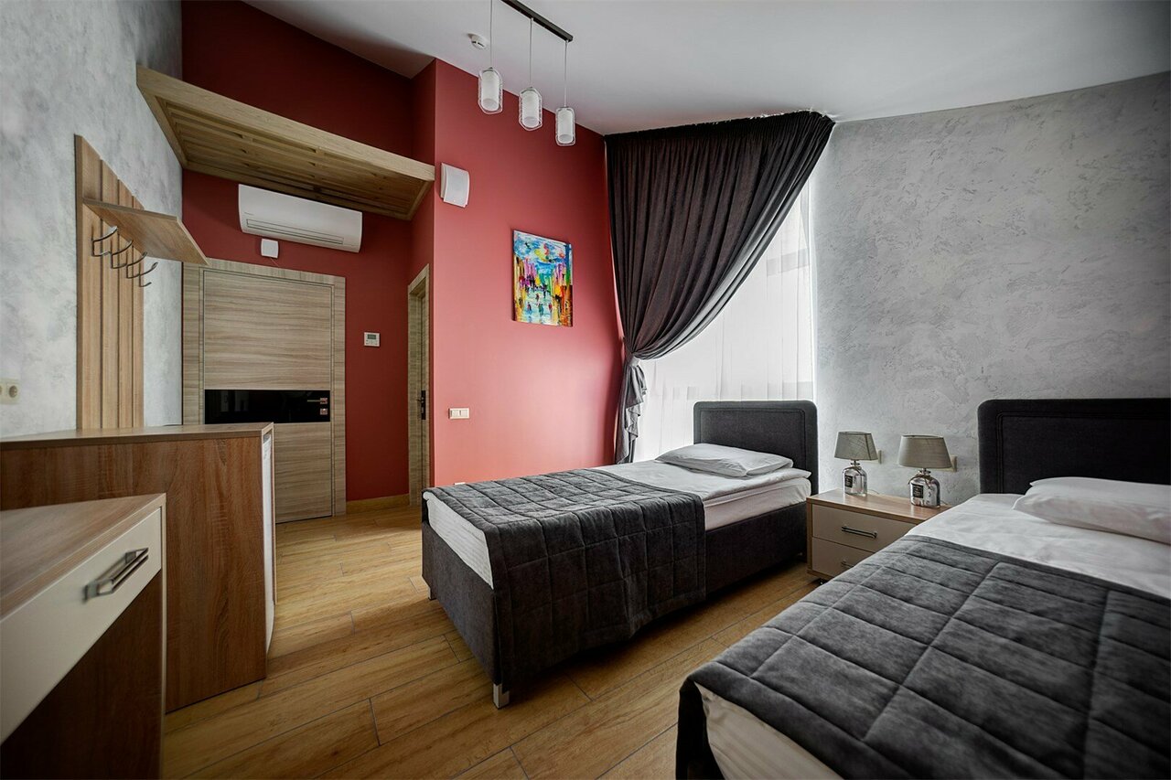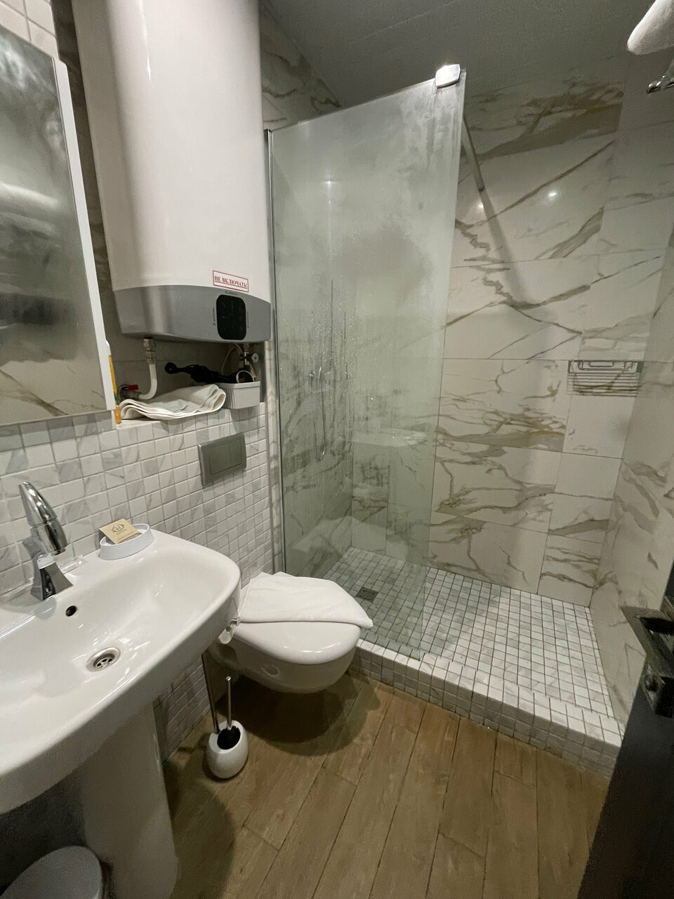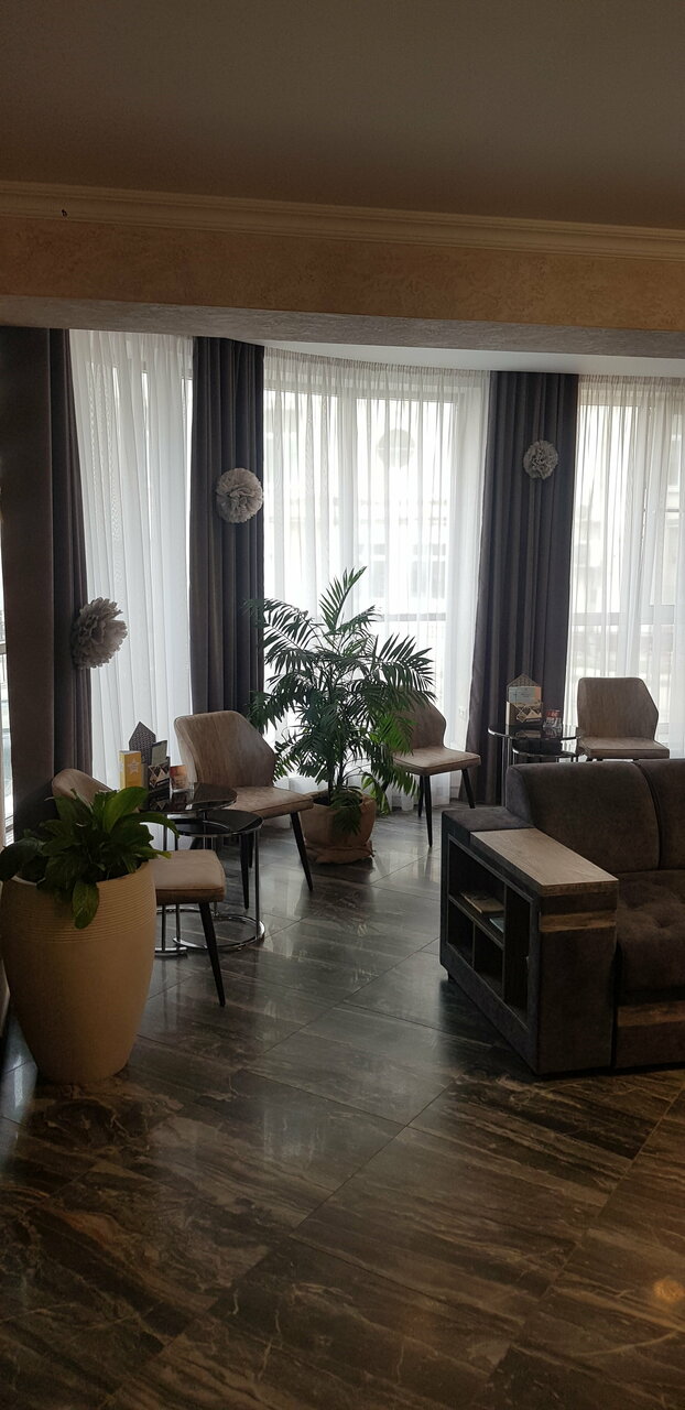 Небольшой отель в центре города, зато достаточно уютный! Останавливались в апартаментах с балконом. Чистый номер, мебель и гарнитура выглядят новыми, не обшарпанные. В номере есть всё — посуда, салфетки, шампуни, фен. Очень приветливый персонал.