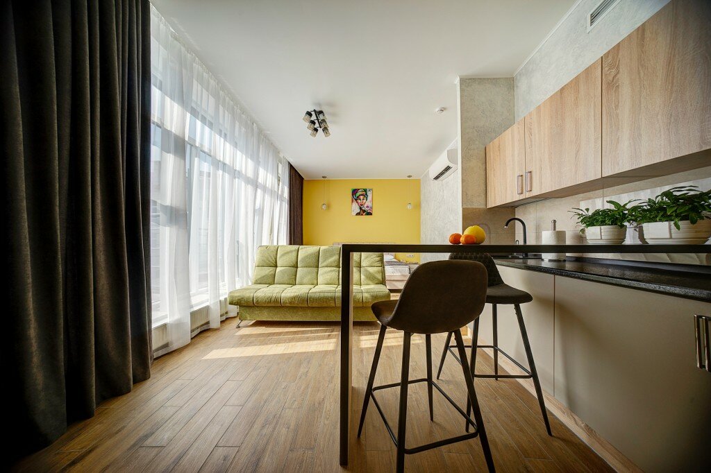 Однокомнатные апартаменты, 40 - 45 кв. м. Возможно: 2 основных и 1 дополнительное место (раскладной диван).