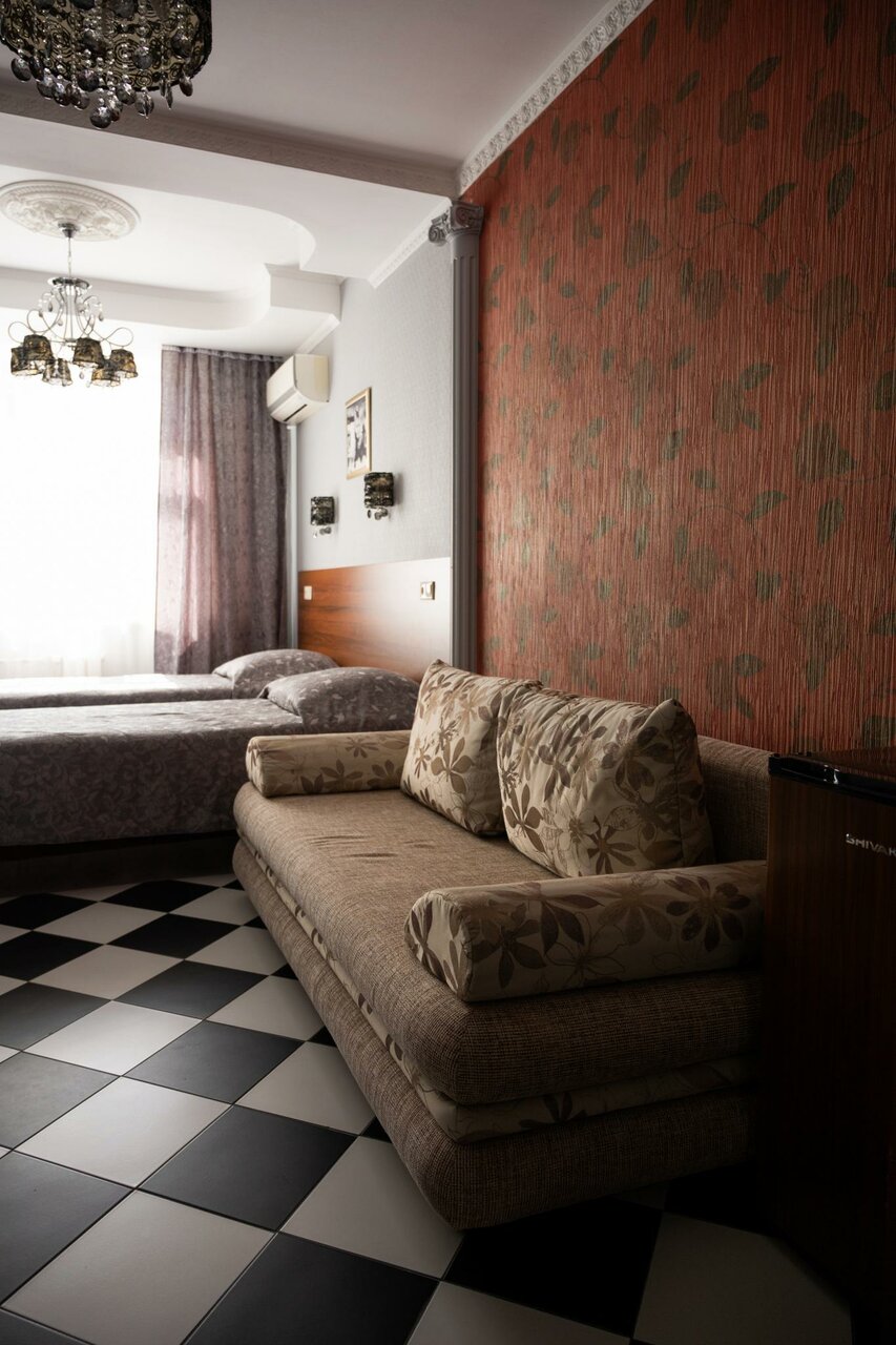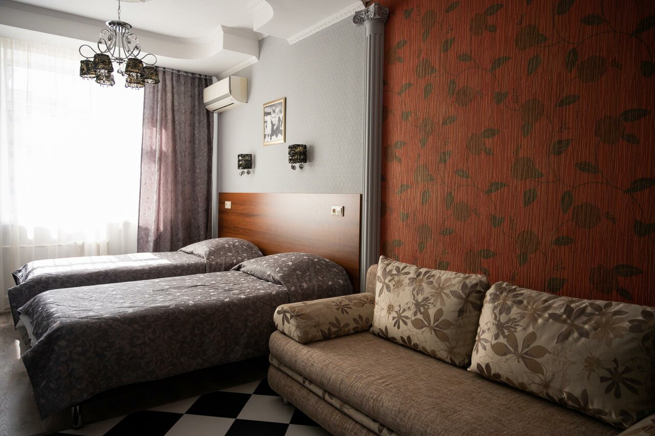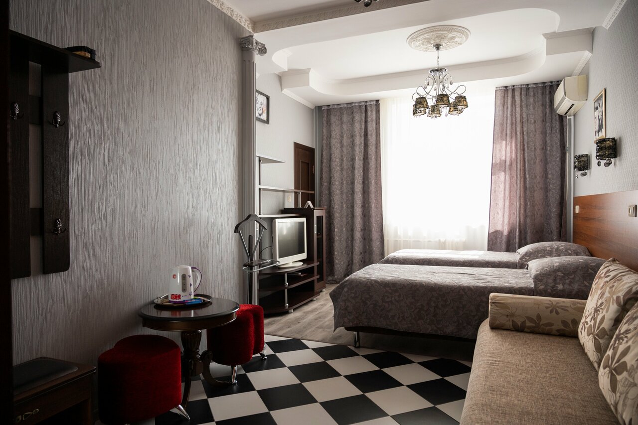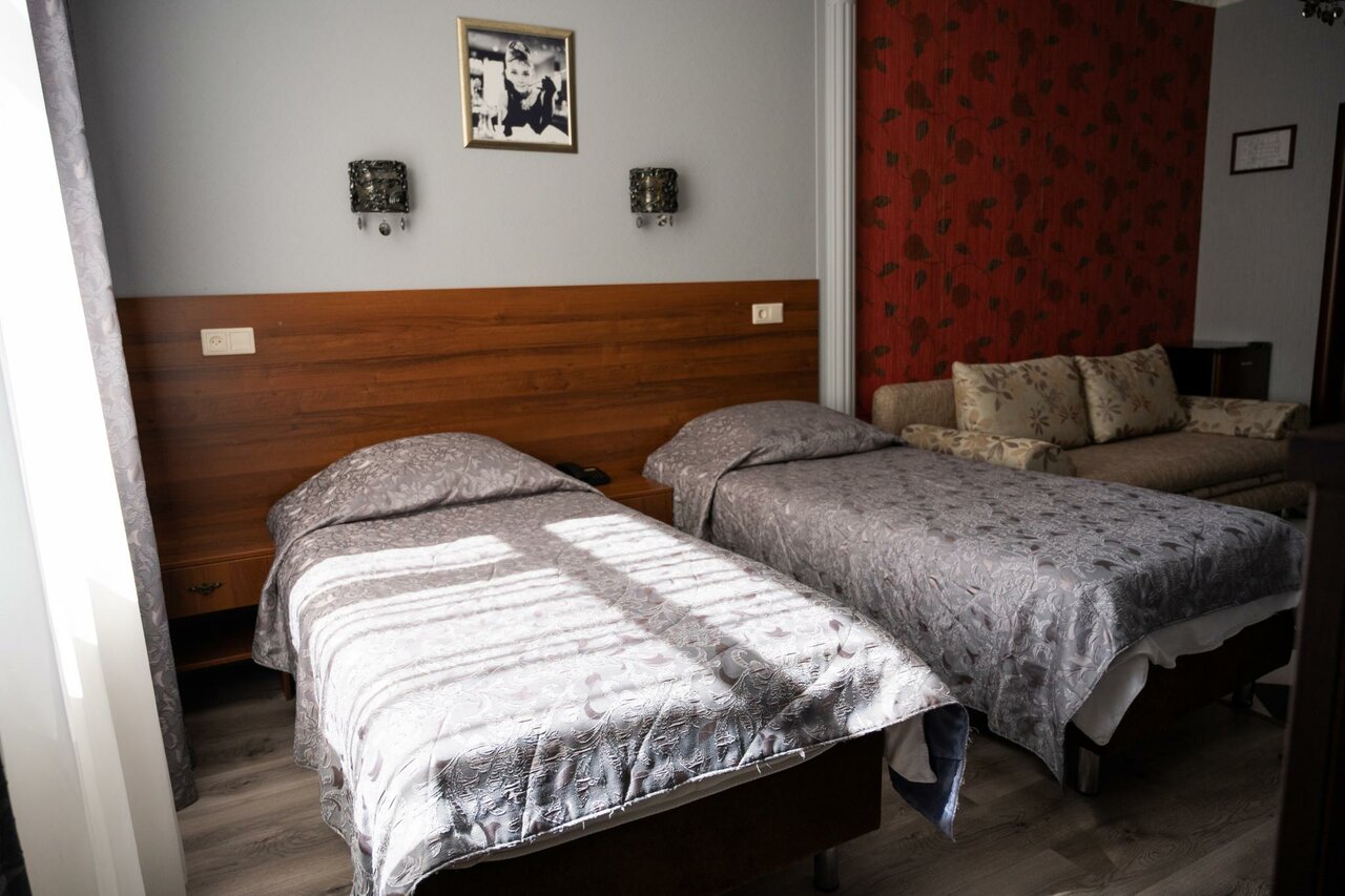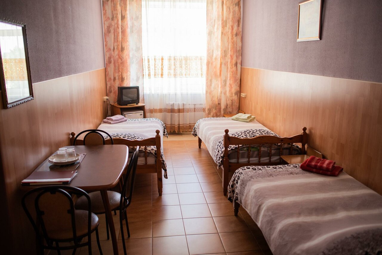 3-х местный однокомнатный номер с одной двухспальной кроватью и одной односпальной,Телевизор, холодильник, кондиционер, эл. чайник, wi-fi, сан. узел (душ, туалет в номере)Цены уточняйте при бронировании.