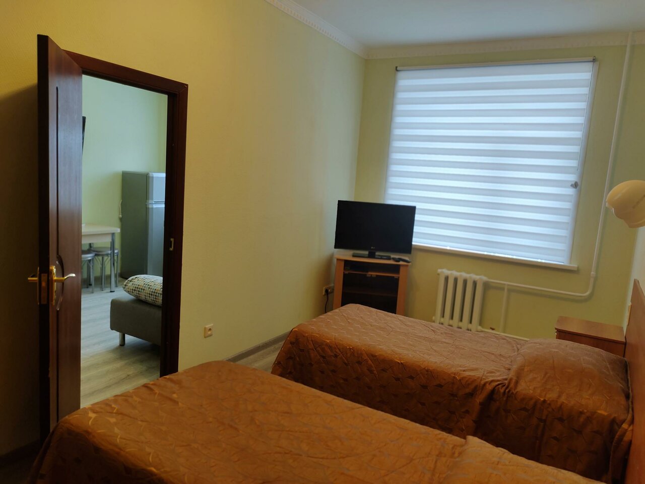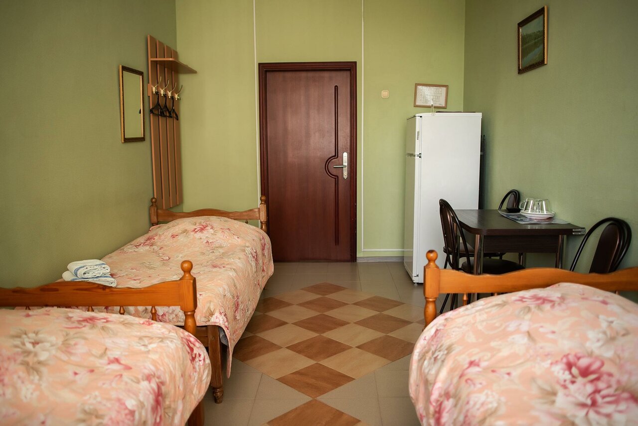 3-х местный номер с мини-кухней Двухспальная кровать 140* 190 и односпальная кровать Телевизор, холодильник, кондиционер, эл. чайник, wi-fi, сан. узел (душ, туалет в номере)Цены уточняйте при бронировании.