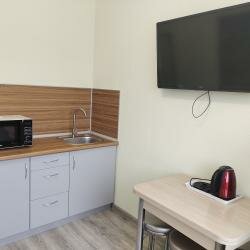 4-х местный номер с мини-кухней Двухспальная кровать и две односпальные кровати Телевизор, холодильник, кондиционер, эл. чайник, wi-fi, сан. узел (душ, туалет в номере)Цены уточняйте при бронировании.