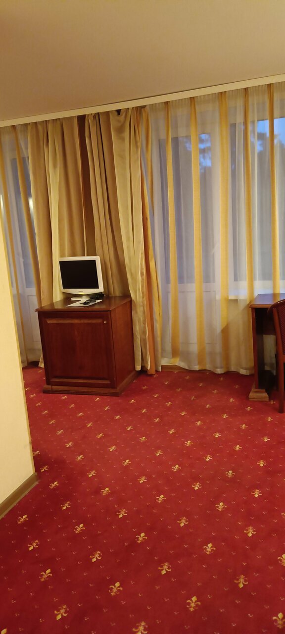 Гостиница не новая, по состоянию внутри, но персонал старается поддерживает чистоту. На рецепшн вас встретят и вежливо подберут то что вы хотите. Номера не дорогие и даже с этим завтрак входит в стоимость, шведский стол в ресторане на первом этаже. Да ресторан или лучше сказать банкетный зал довольно сильно устарел но там просторно и светло, а главное вкусно кормят. Охраняемая площадка для автомобилей, лучше сказать что вся гостиница огорожена забором и попасть внутрь можно только через КПП со шлагбаумом. Целенаправленно в гостиницу я конечно не поеду, но проезжая мимо города, я выберу именно эту гостиницу.