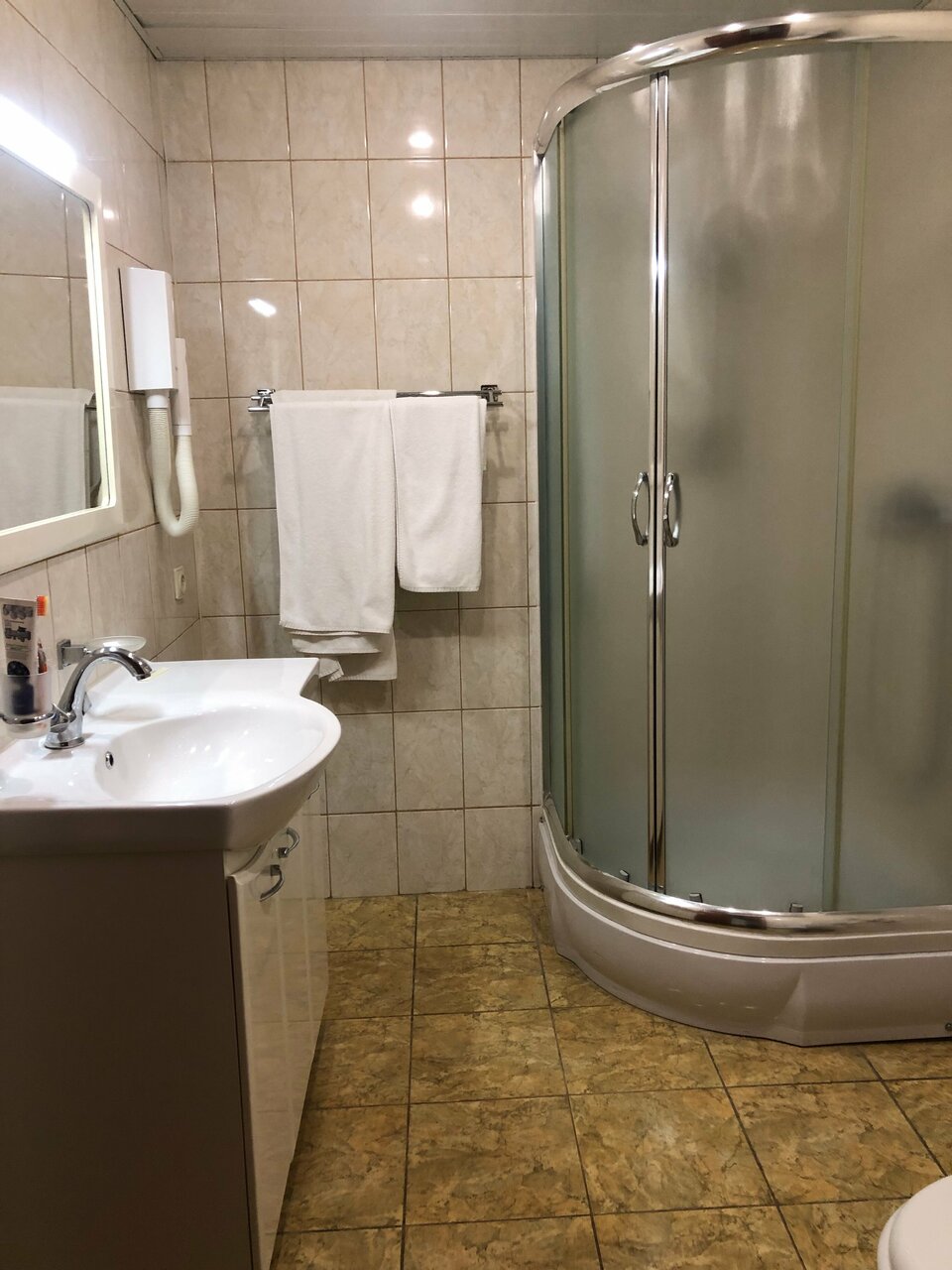 Гостиница далеко не первой свежести. Из плюсов только удачное месторасположение! В номерах холодно, местами ободраны стены и затерты полы. Мебель на троечку! Кухня тоже оставляет желать лучшего!