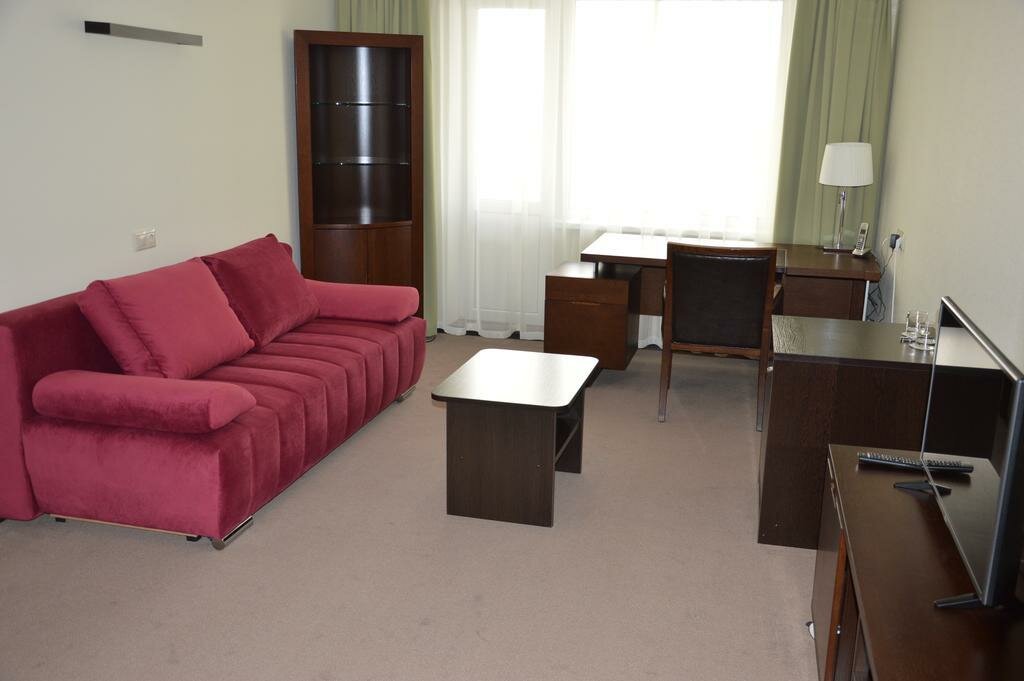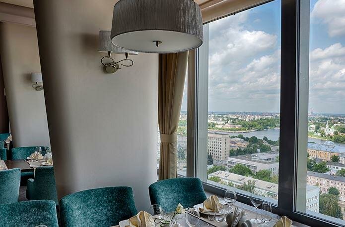 Номер люкс. Тянет максимум на полулюкс. Середина октября в номере холодные батареи. Стоит обогреватель и кондиционер на 25 градусов тепло дует. Из ванной пахнет засоявшейся водой. Вода ржавая, сливали 30 минут. Не изменилось. С ресторана на 22 этаже слышно музыку. Красный диван в комнате с пятнами. Тверь город классный!!!