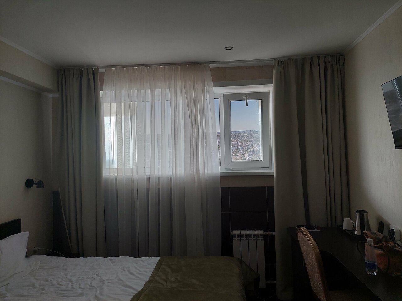 Я ожидал большего. Окна в номере не панорамные и расположены достаточно высоко. Практически на носочки надо подниматься, чтобы посмотреть в окно.