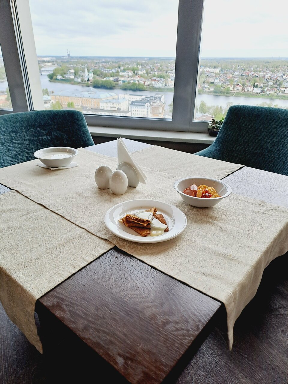 Вид Отсюда и название гостиницы. Мне все понравилось, хороший номер, есть даже халаты. Завтрак в ресторане с видом на город вообще потрясающий