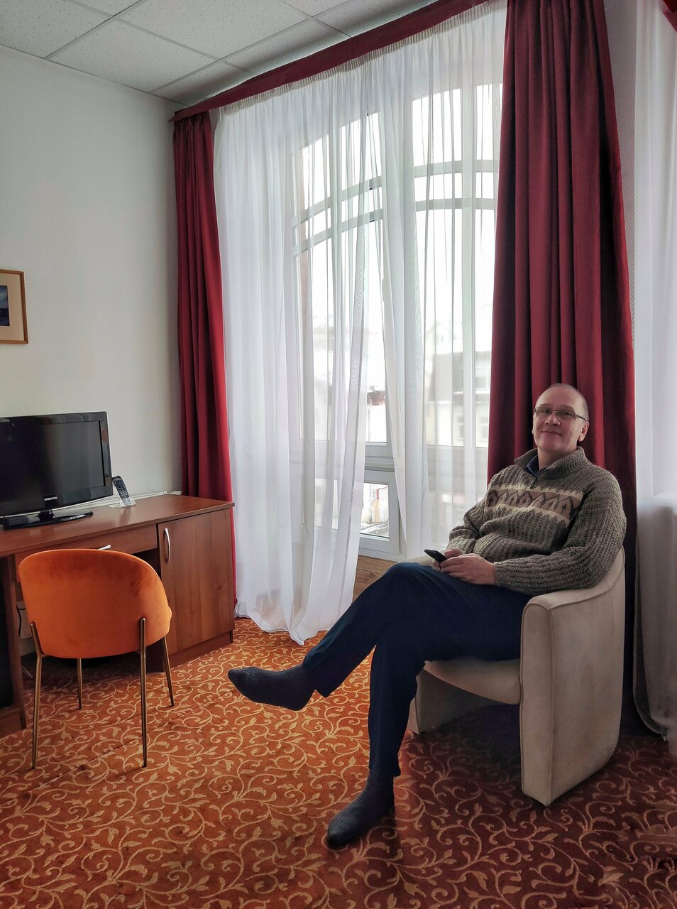 Европейский отель. Шведский стол.Чистота, вежливый персонал. Расположение- рядом с центром. Можно погулять, рядом есть кафе , рестораны, магазины. Номера на двоих достаточно просторные,есть чайник, чашки, чай, бутылочки воды. Очень тепло.
