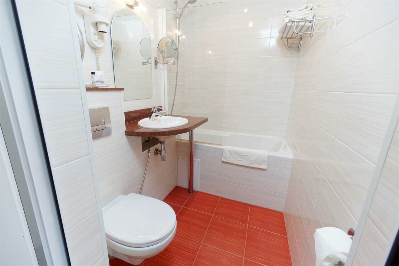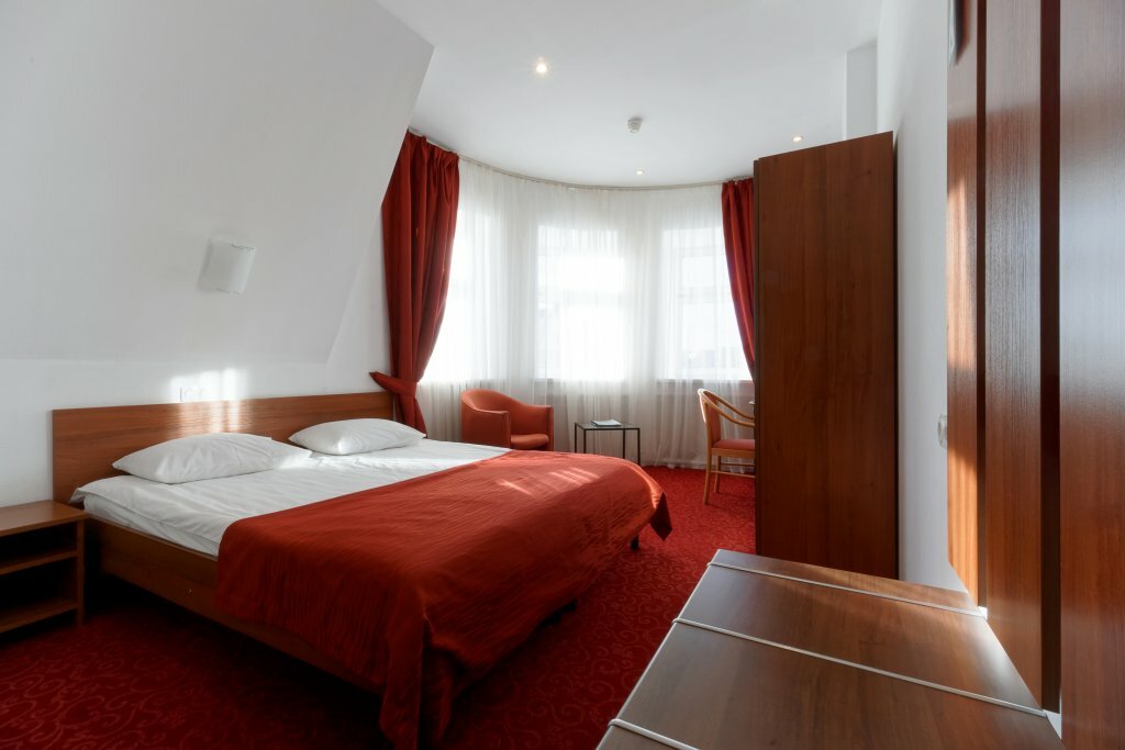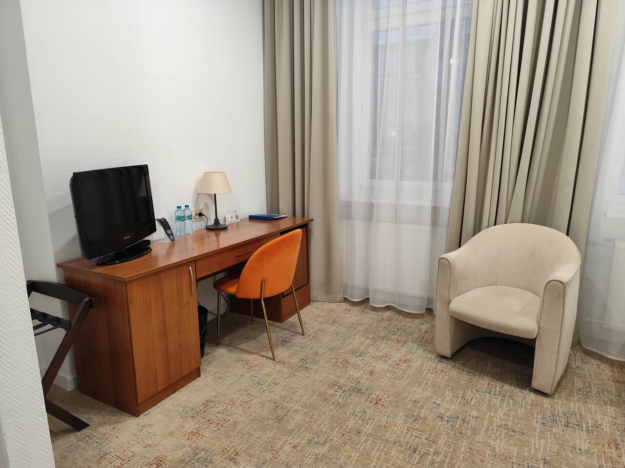 Небольшой уютный номер для тех, кому нужно отлично отдохнуть и выспаться. Все необходимые аксессуары - халат, тапочки, гостиничная косметика - в вашем распоряжении. Чистота и комфорт - это то, что ожидает вас при выборе такого номера!