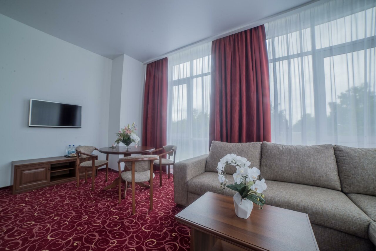- Просторные номера (включая люксы с джакузи, гардеробной).