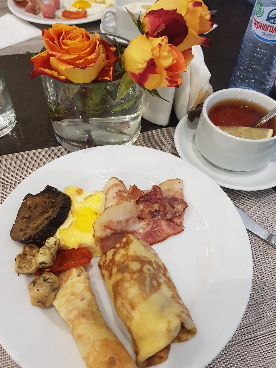 Для 4х звезд, очень скромные завтраки. Мы были там с 18 мая по 20 мая, все два дня ресторан их не работал. На улице было больше 25, кондиционеры у них еще не работали, в номерах душно, когда спросили как включить кондиционер, нам сказали, система еще не запущена, пульты не раздавали, если жарко, перекройте батареи и откройте окна. В целом отель не плохой, расположен хорошо, персонал улыбчивый.