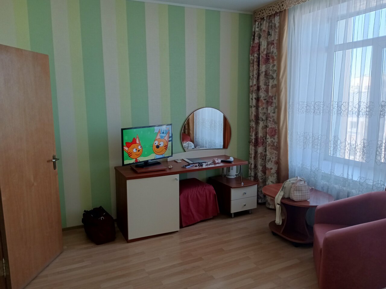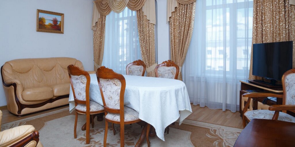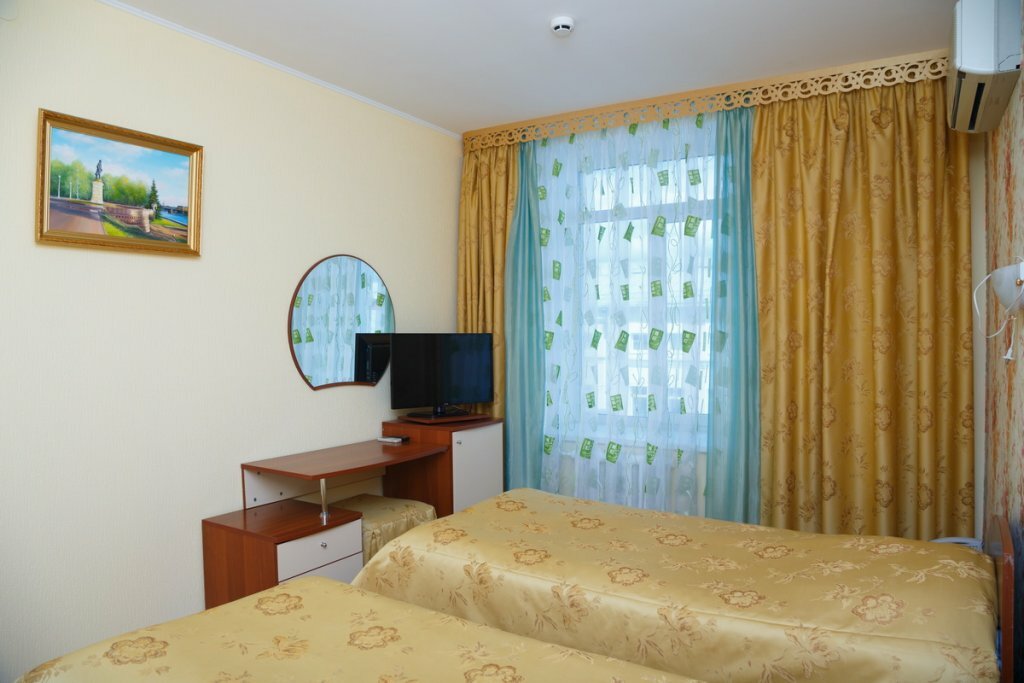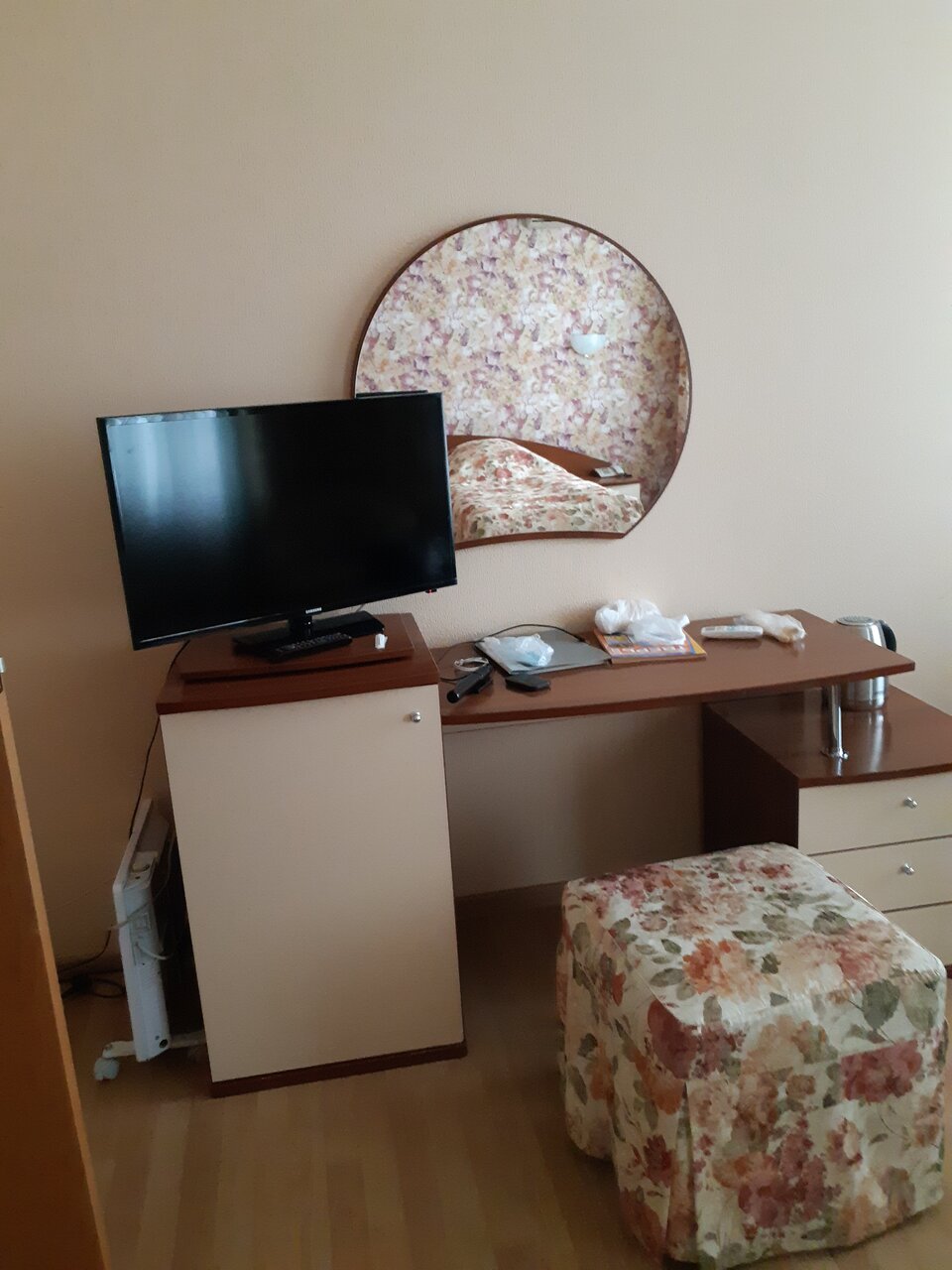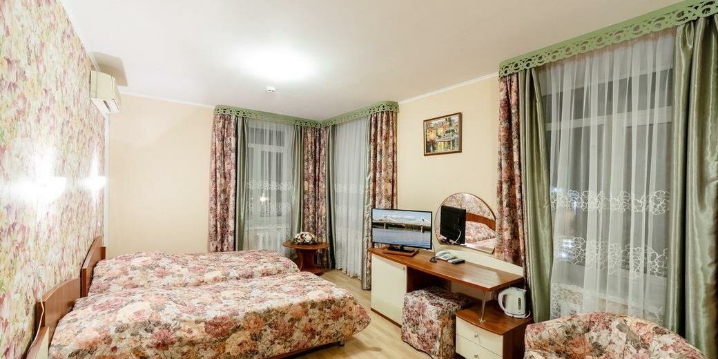 Понравилось отношение: заселили намного раньше, мы приехали около 10 утра. Сразу пошли на завтрак. Нам очень понравилась творожная запеканка) Номер окнами выходил на улицу. Сначала мы подумали, что не уснём от шума, но к вечеру были такими уставшими, что уснули моментально. В номере всё работало, горячая вода в душе была. Правда, в кулере воды ни разу набрать не удалось, её уже не было, когда мы подходили. Но мы купили в Магните, внизу. Ресторан работал только на завтраке. Завтрак был по меню, всё очень добротно, вкусно, по-советски). Пытались перед отъездом пообедать в ресторане Манилов ( ближайший), но там было слишком много народа. Чуть ниже в переулке прекрасно пообедали в ресторане. В гостинице при входе был ремонт, поэтому не было вывески, как на фото, и ресепшн очень скромный, но персонал очень старался оставить хорошее впечатление.